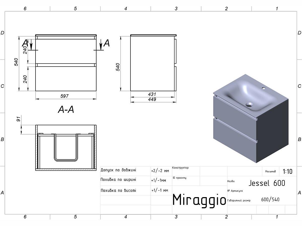 Документація Тумба подвесная NATURA кашемир, ДСП с умывальником JESSEL 600