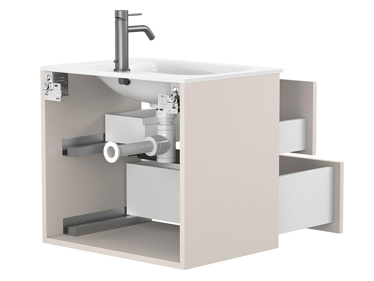 Тумба подвесная NATURA кашемир, ДСП с умывальником JESSEL 600