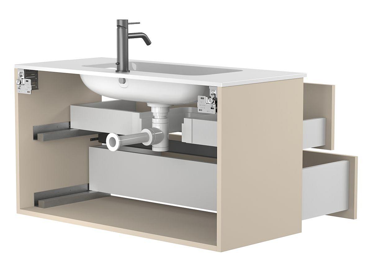 Характеристики Тумба подвесная NATURA кашемир, МДФ, с умывальником DELLA 1000