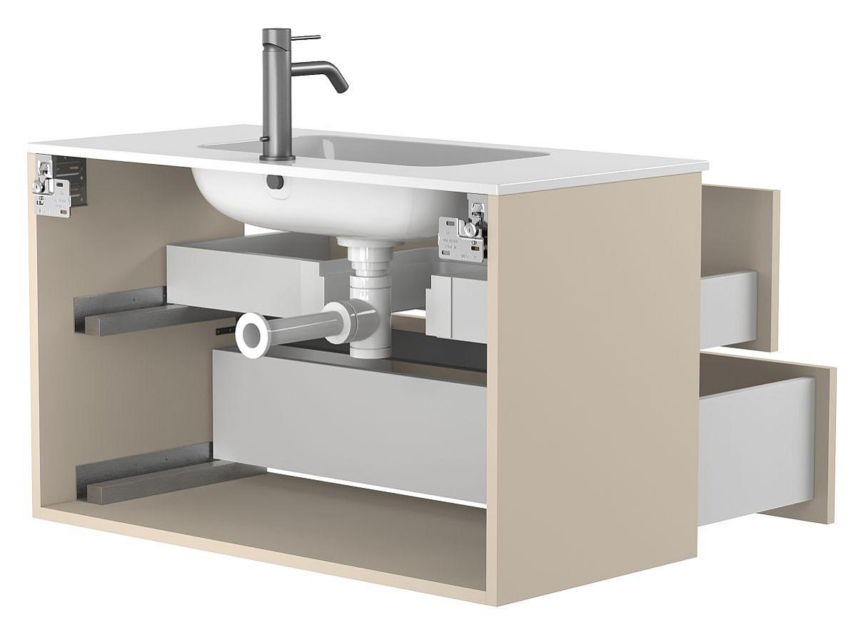 *Внимание! Тумба поставляется в комплекте с раковиной, однако сифон и смеситель не входят в базовую комплектацию — их необходимо приобрести отдельно. На изображении эти элементы добавлены для полного визуального представления внешнего вида изделия.
