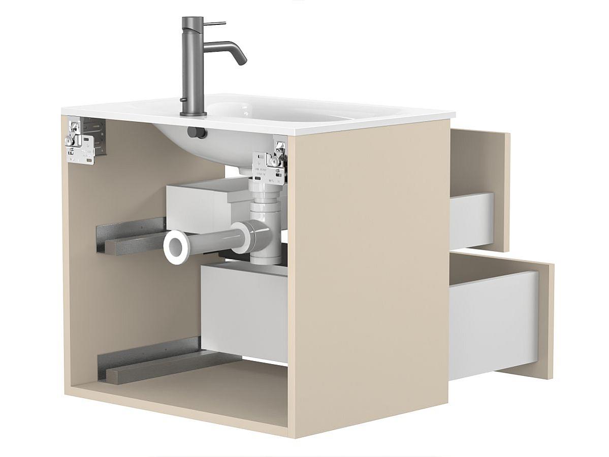 *Внимание! Тумба поставляется в комплекте с раковиной, однако сифон и смеситель не входят в базовую комплектацию — их необходимо приобрести отдельно. На изображении эти элементы добавлены для полного визуального представления внешнего вида изделия.
