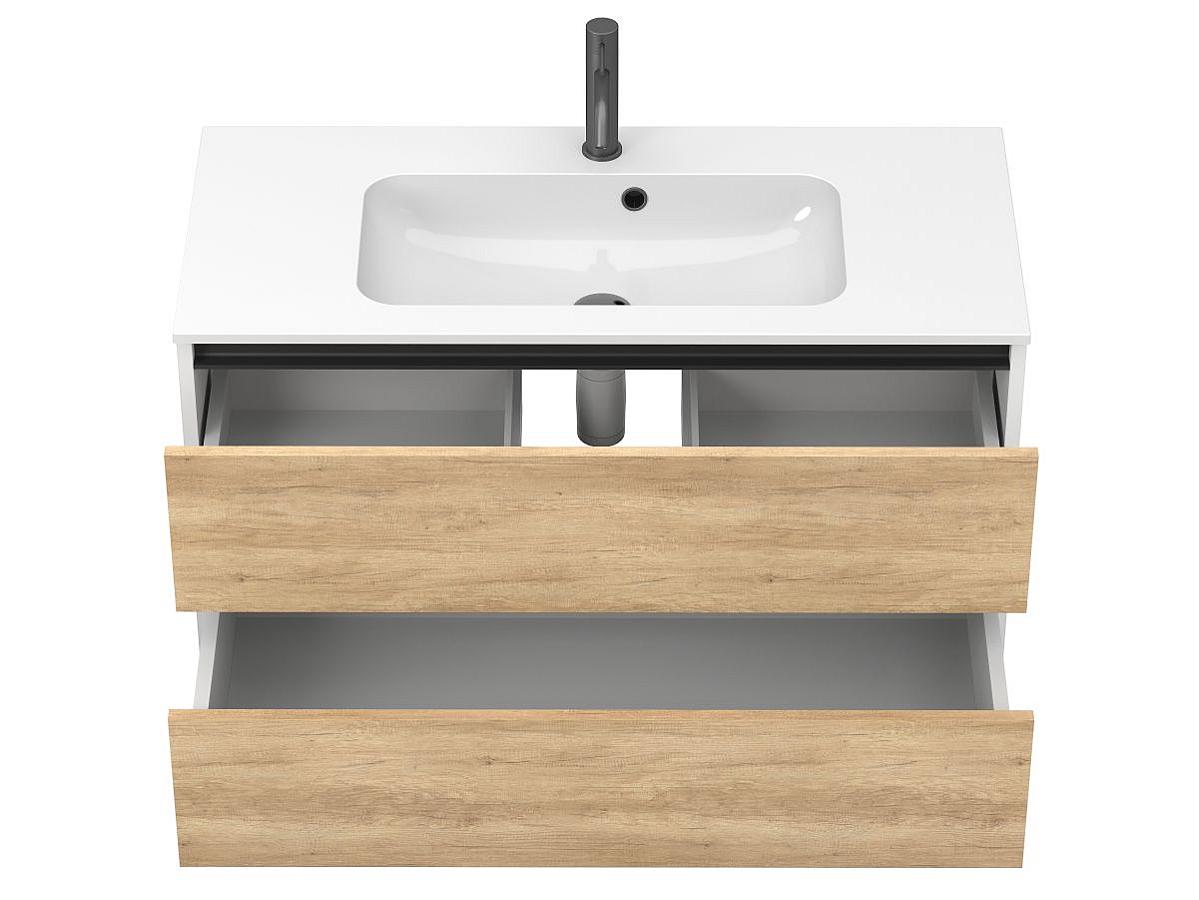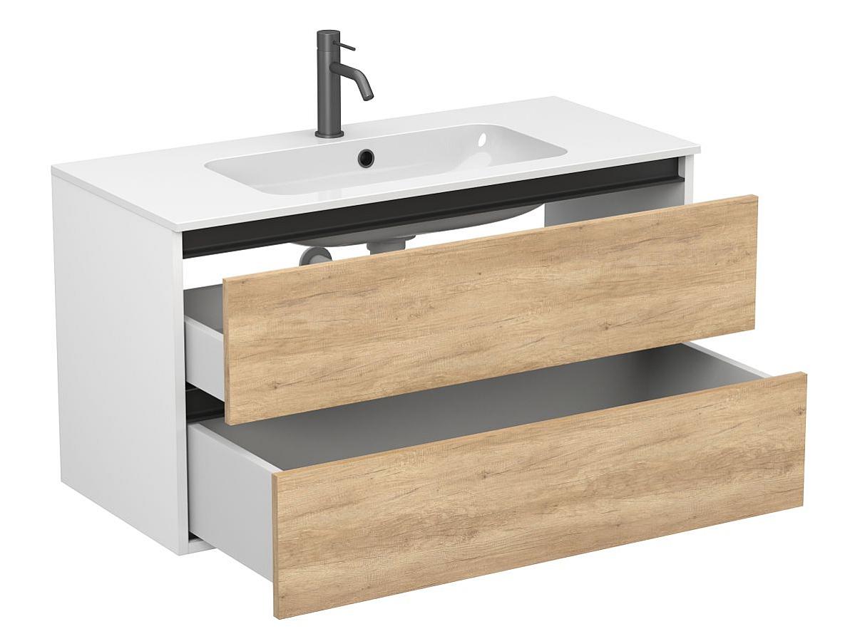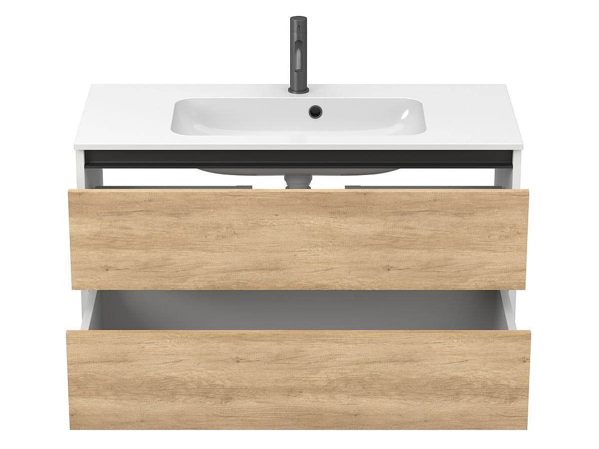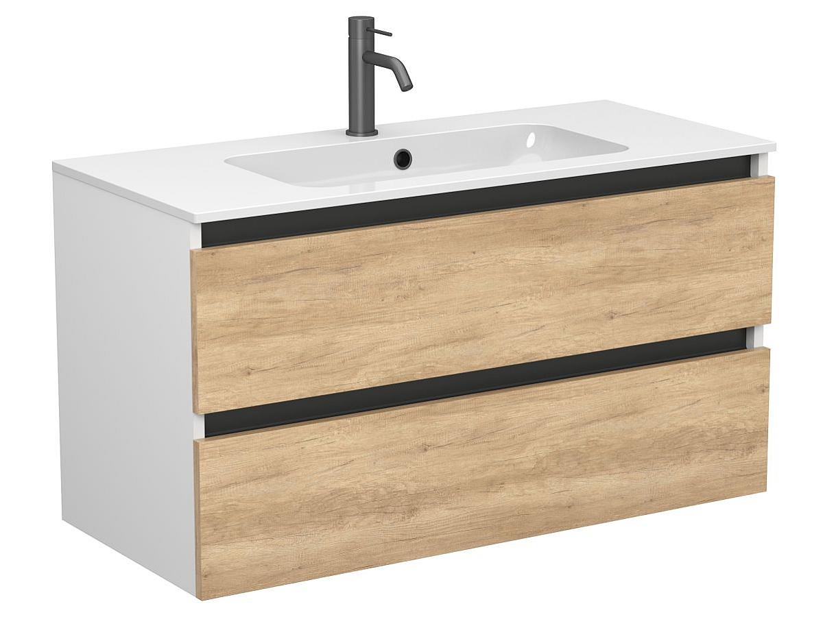 Тумба подвесная NATURA Дуб Небраска с умывальником DELLA 1000