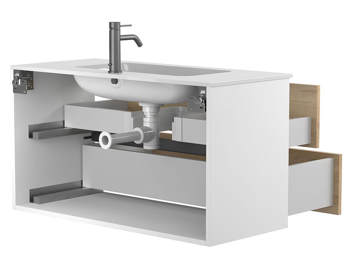 *Внимание! Тумба поставляется в комплекте с раковиной, однако сифон и смеситель не входят в базовую комплектацию — их необходимо приобрести отдельно. На изображении эти элементы добавлены для полного визуального представления внешнего вида изделия.