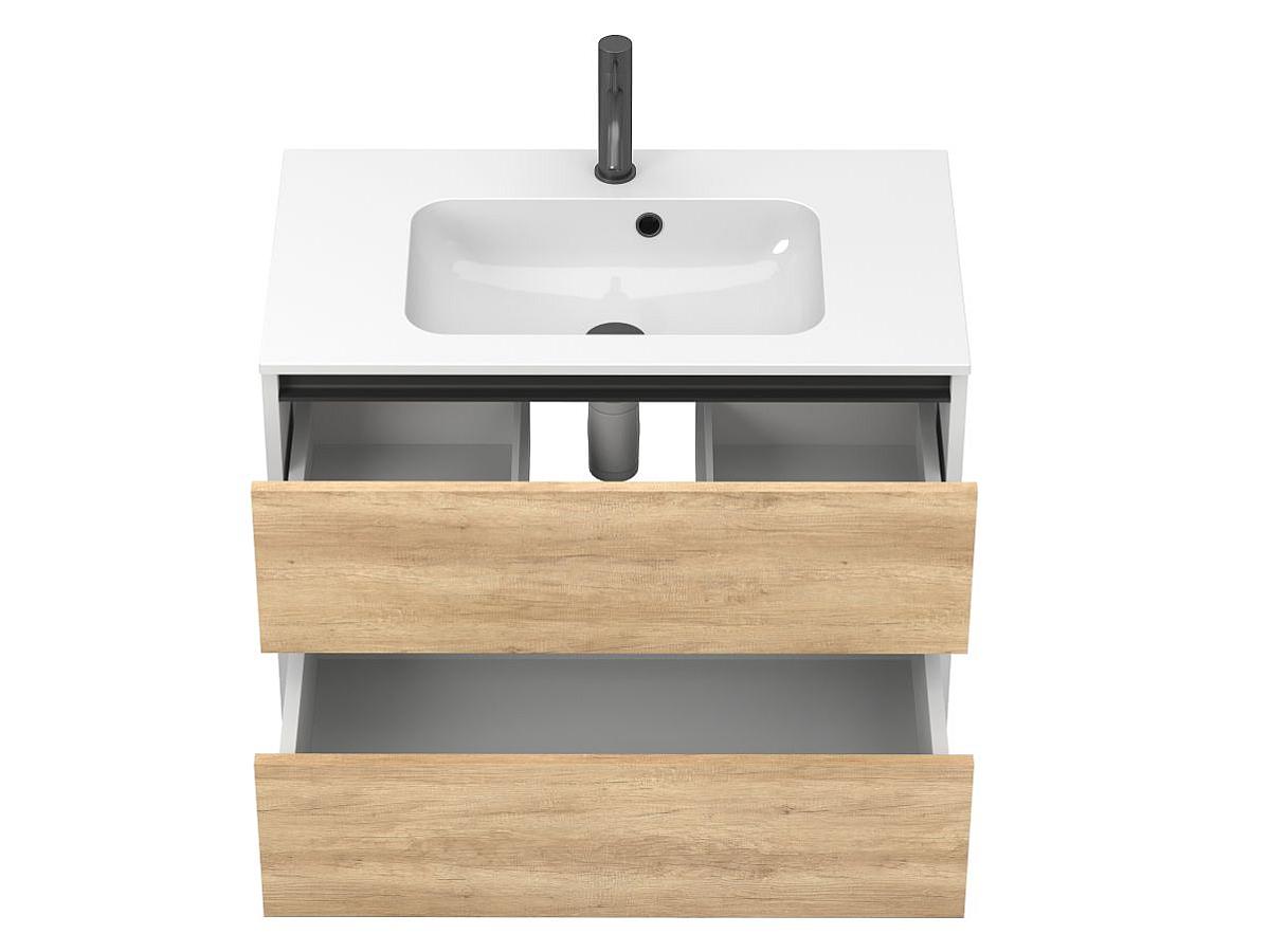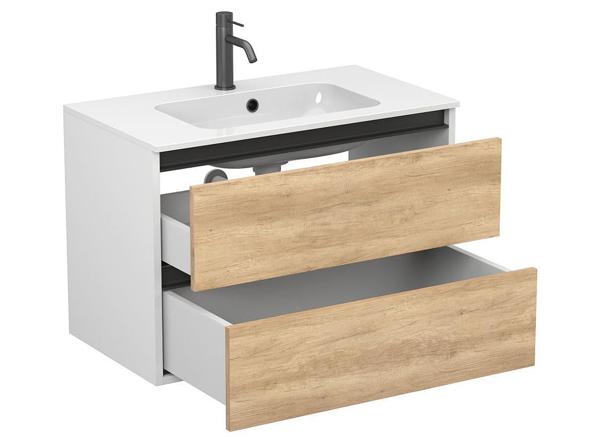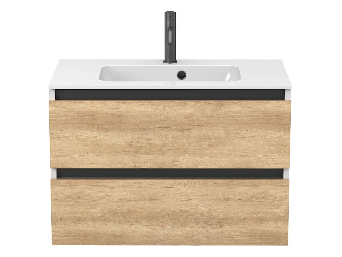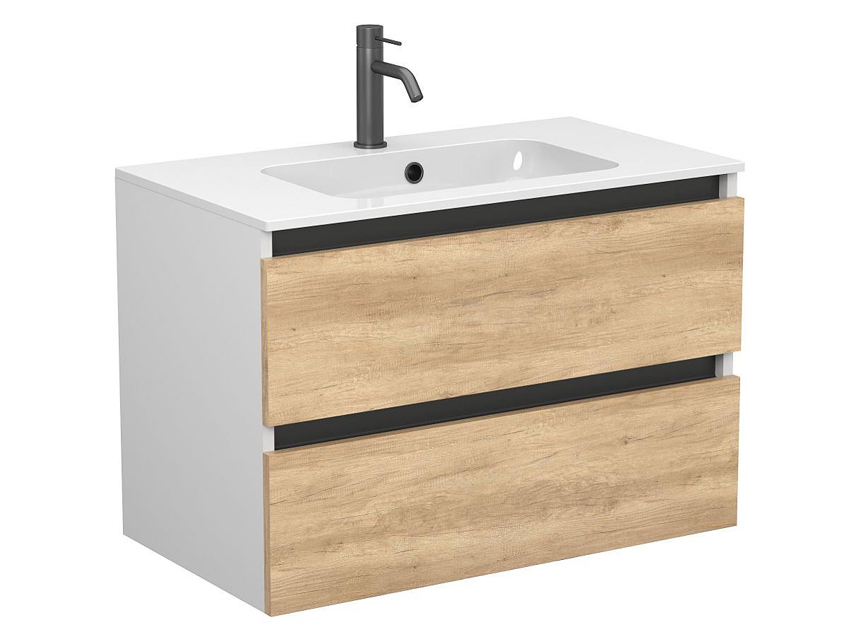 Тумба подвесная NATURA Дуб Небраска с умывальником DELLA 800
