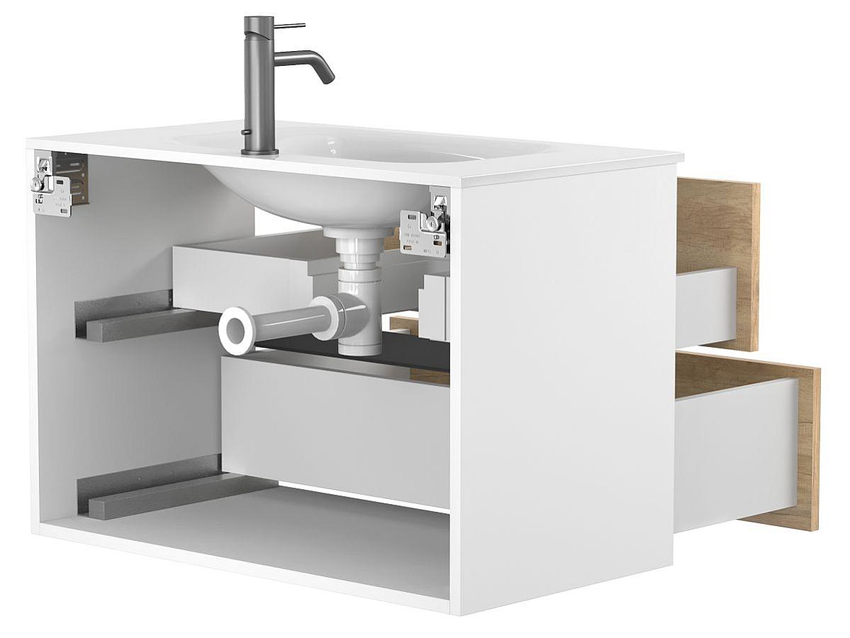 *Внимание! Тумба поставляется в комплекте с раковиной, однако сифон и смеситель не входят в базовую комплектацию — их необходимо приобрести отдельно. На изображении эти элементы добавлены для полного визуального представления внешнего вида изделия.