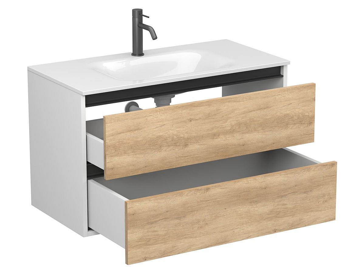*Внимание! Тумба поставляется в комплекте с раковиной, однако сифон и смеситель не входят в базовую комплектацию — их необходимо приобрести отдельно. На изображении эти элементы добавлены для полного визуального представления внешнего вида изделия.