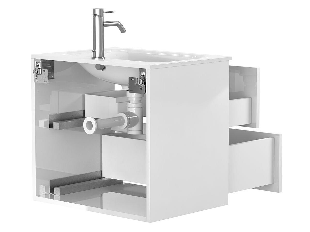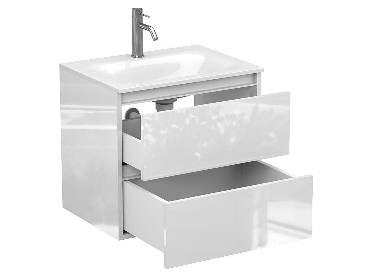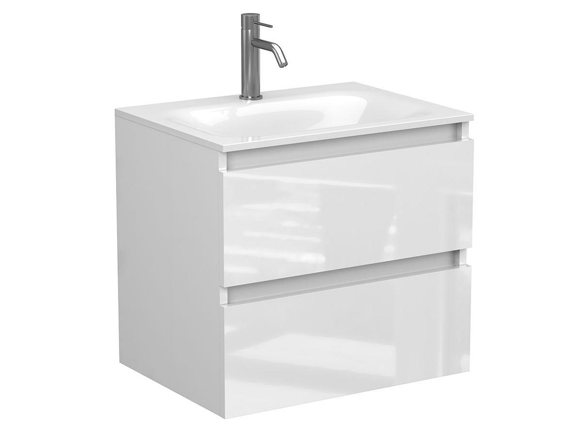 Тумба подвесная NATURA белая глянцевая с умывальником JESSEL 600