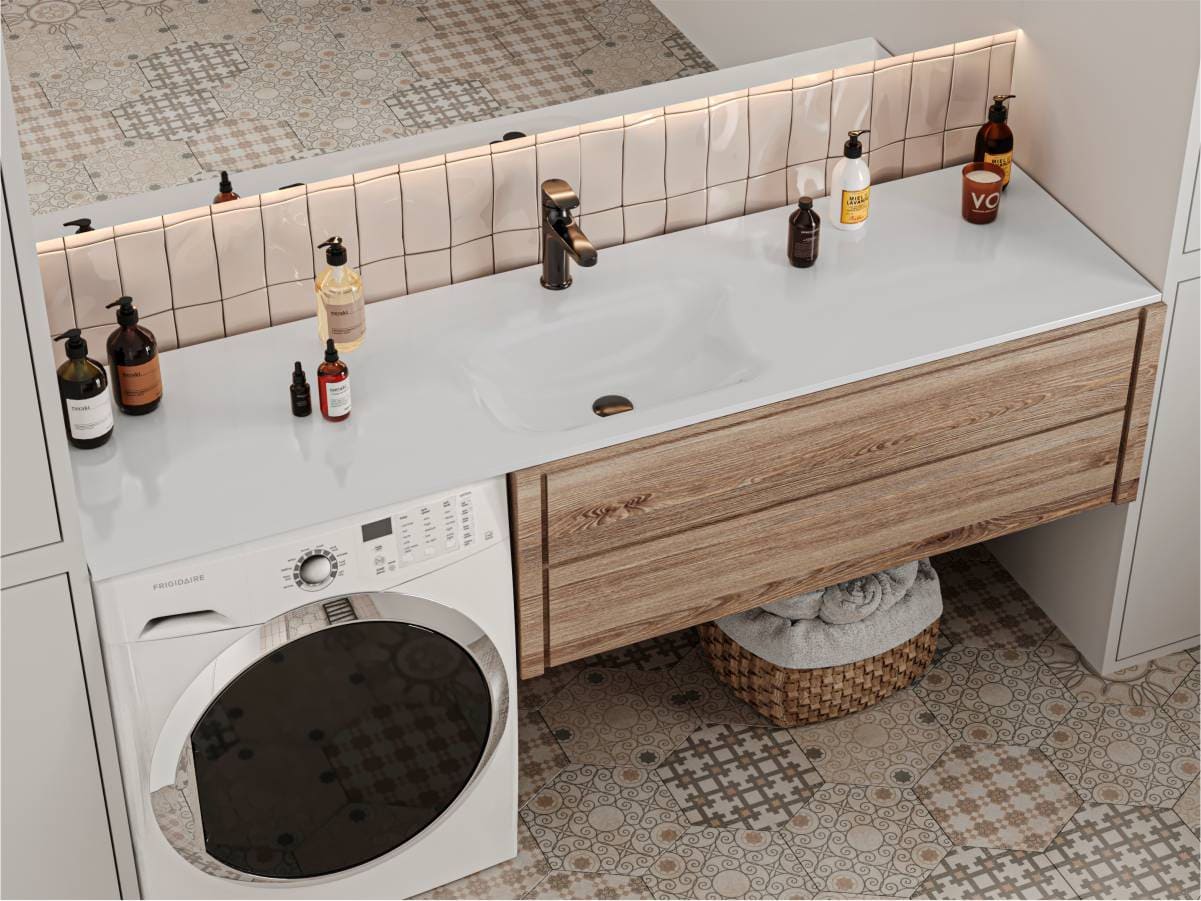 Длиииииииннющие крылья – абсолютный тренд этого сезона, поэтому встречайте любимые модели умывальников DELLA 1800, JESSEL 1800, NEW YORK 1850 в новых огромных размерах. Длинная прямоугольная чаша придаст удобству вашему интерьеру. Под крылышками вы можете разместить тумбочки для хранения банных принадлежностей и стиральную машинку. На поверхности хорошо размещаются все необходимые гигиенические средства.