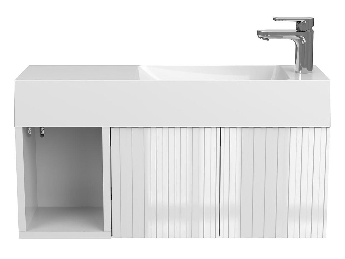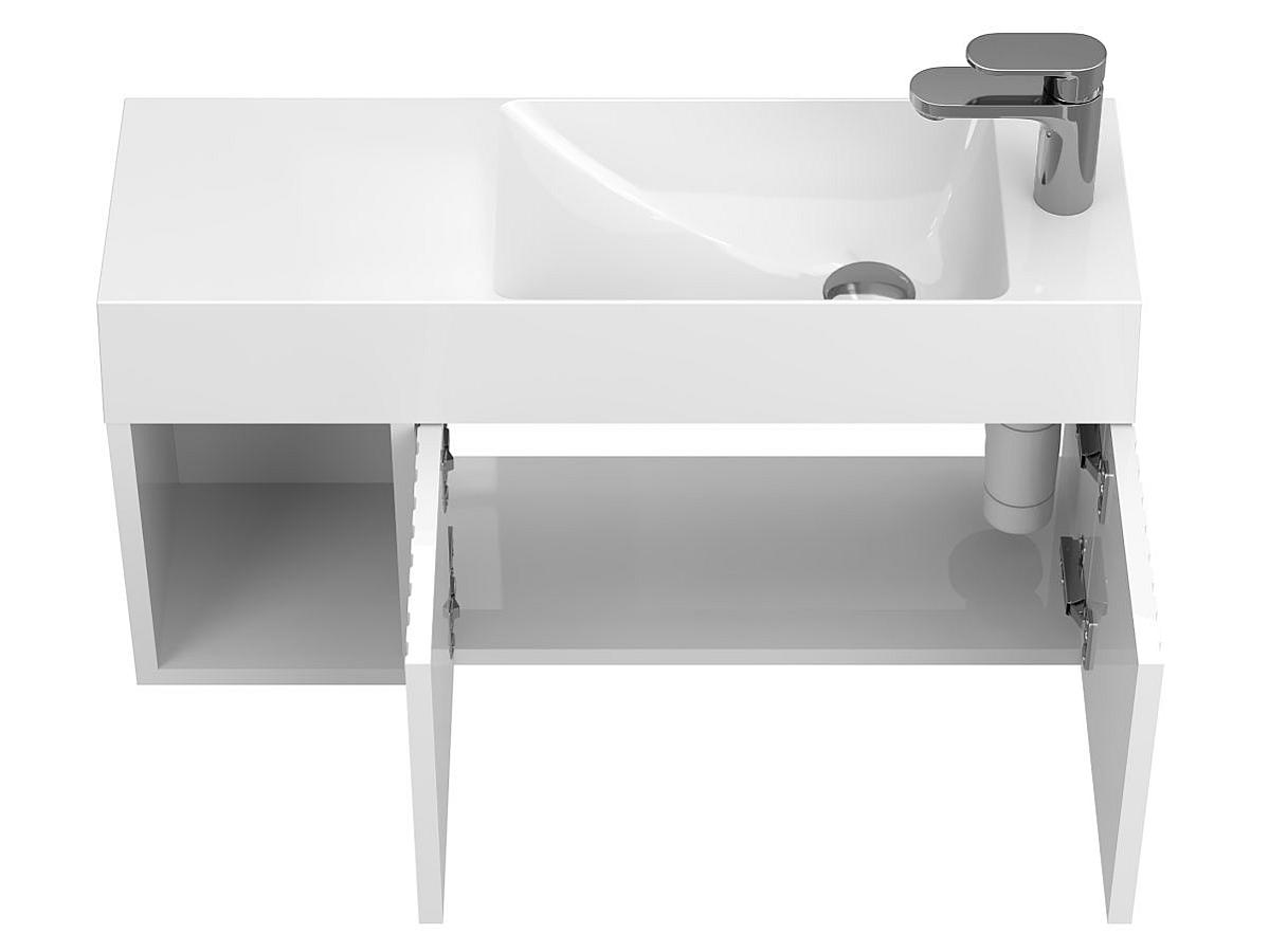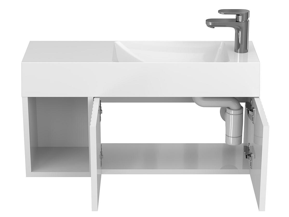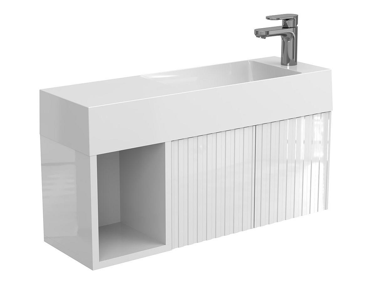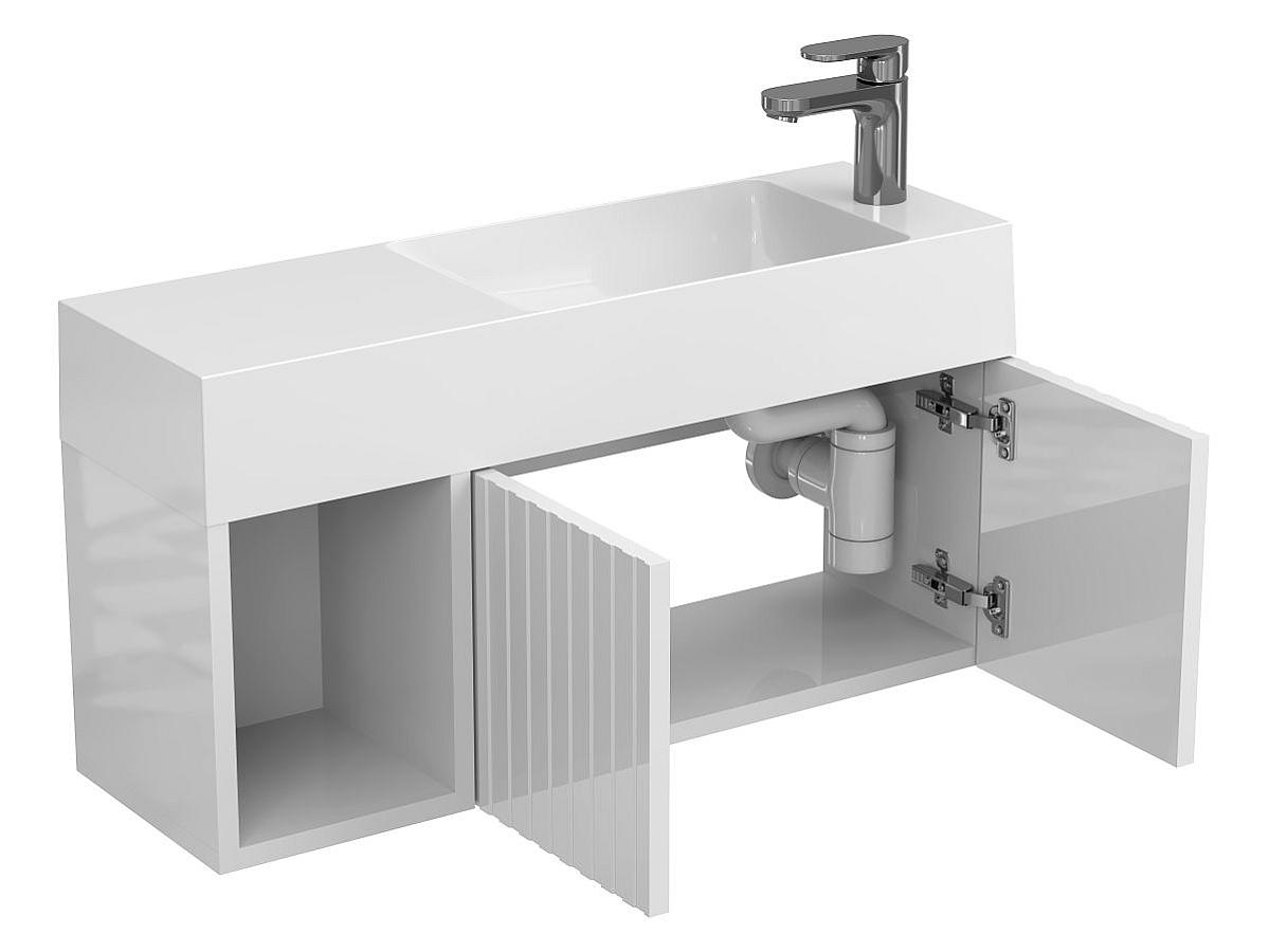 Тумба подвесная AURA белая глянцевая с умывальником SHANGHAI R