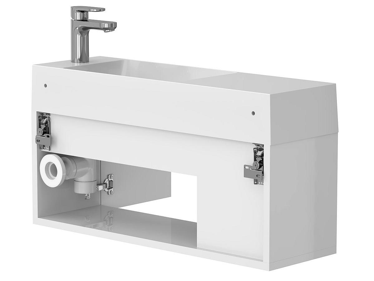 *Внимание! Тумба поставляется в комплекте с раковиной, однако сифон и смеситель не входят в базовую комплектацию — их необходимо приобрести отдельно. На изображении эти элементы добавлены для полного визуального понимания внешнего вида изделия.