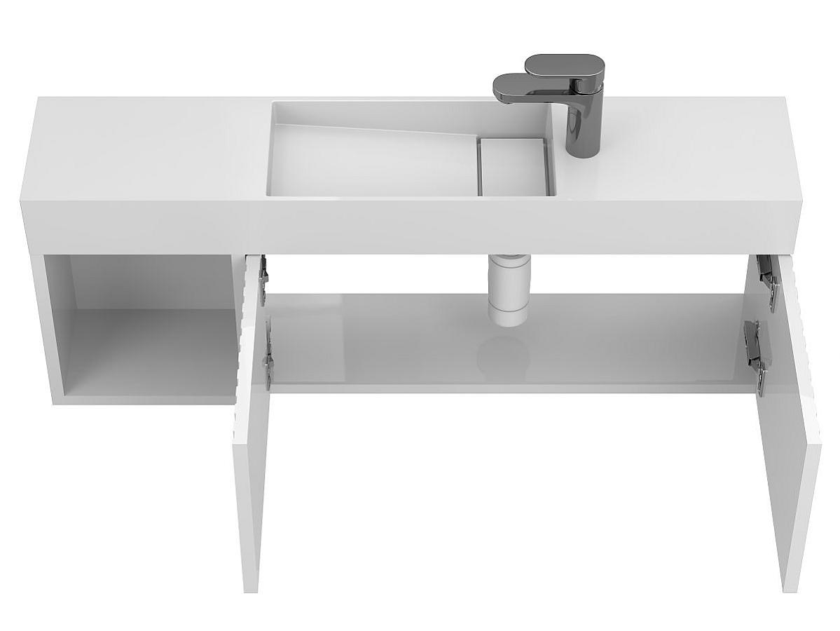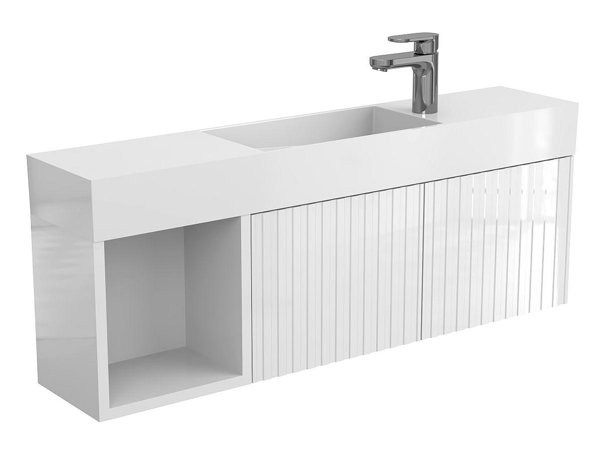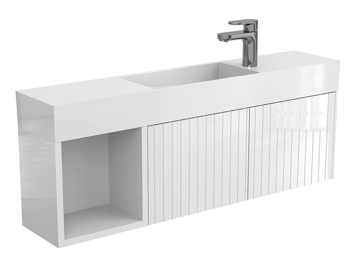 Тумба подвесная AURA белая глянцевая с умывальником TONI 1050
