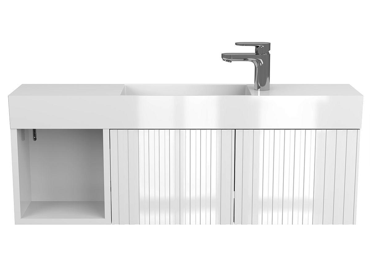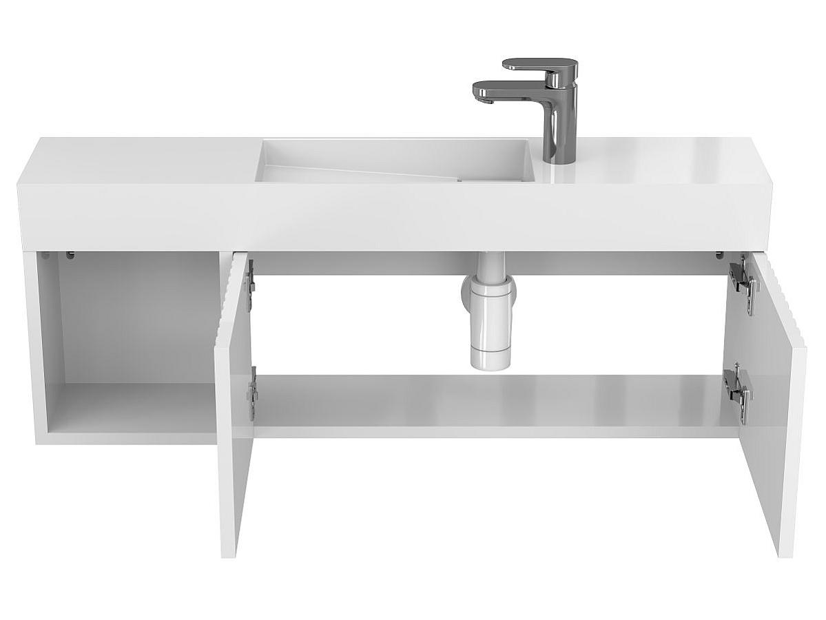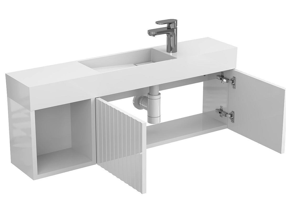 *Внимание! Тумба поставляется в комплекте с раковиной, однако сифон и смеситель не входят в базовую комплектацию — их необходимо приобрести отдельно. На изображении эти элементы добавлены для полного визуального понимания внешнего вида изделия.