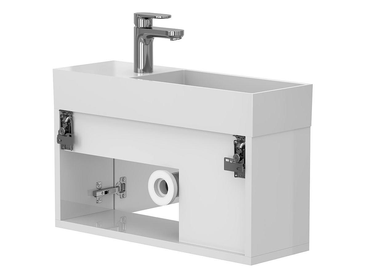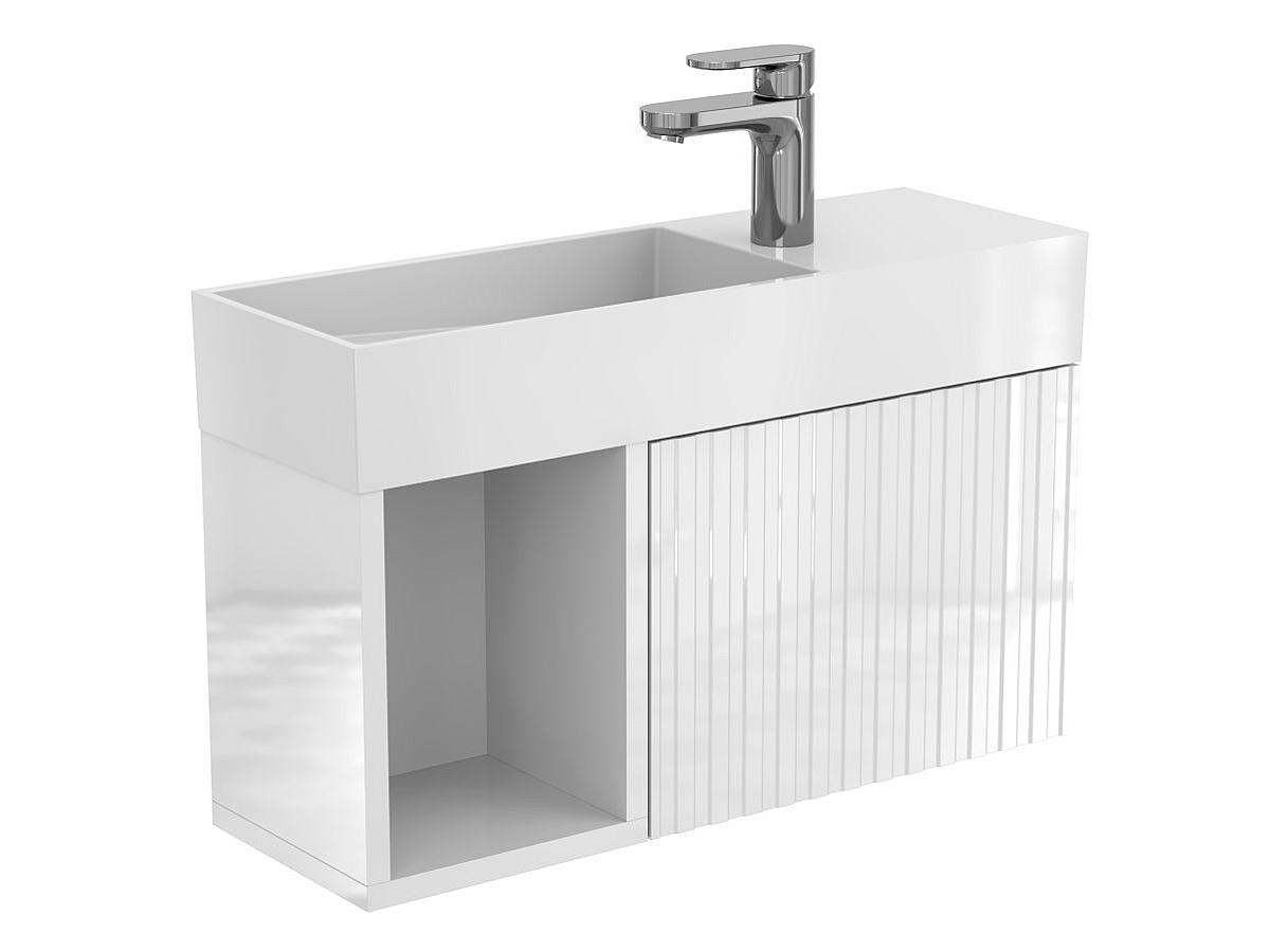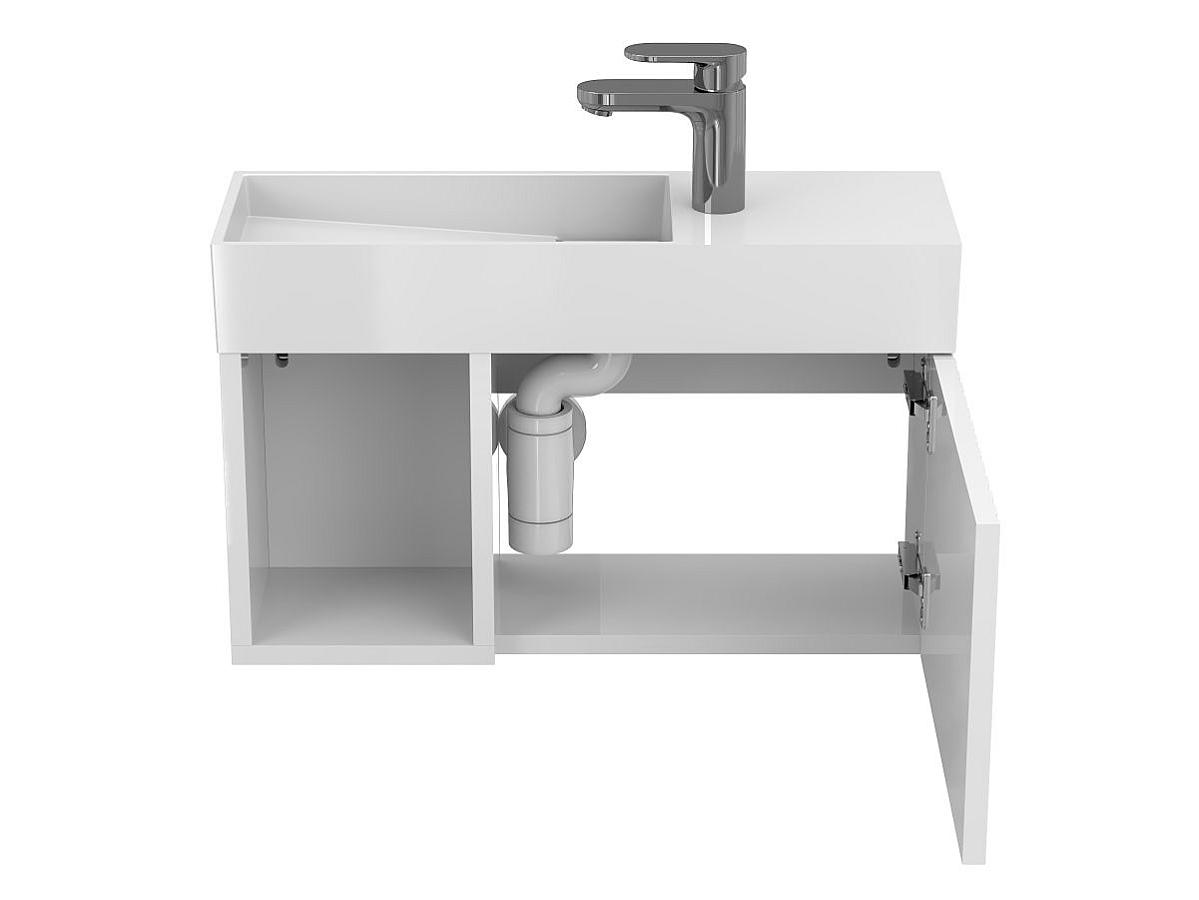 Тумба подвесная AURA белая глянцевая с умывальником TONI 650