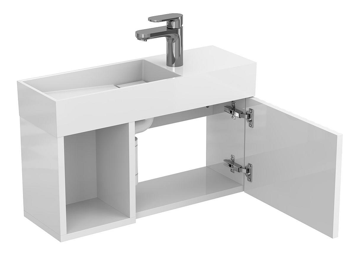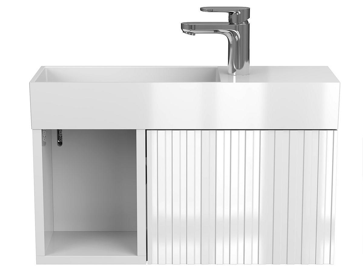 *Внимание! Тумба поставляется в комплекте с раковиной, однако сифон и смеситель не входят в базовую комплектацию — их необходимо приобрести отдельно. На изображении эти элементы добавлены для полного визуального понимания внешнего вида изделия.