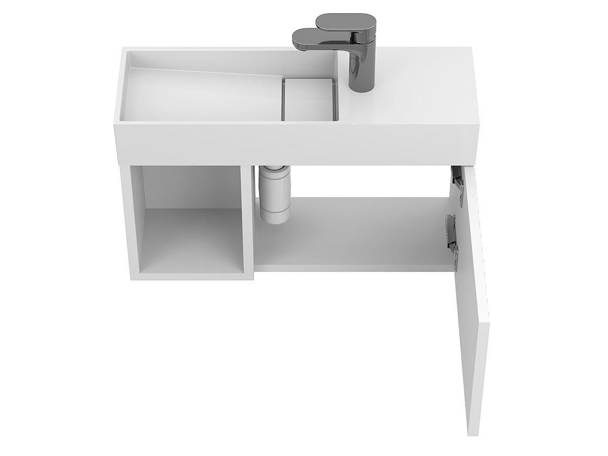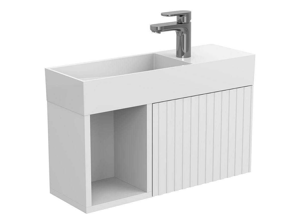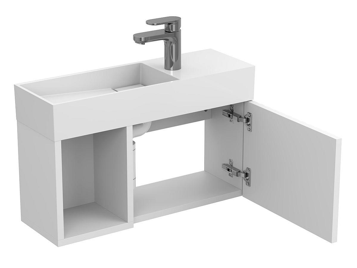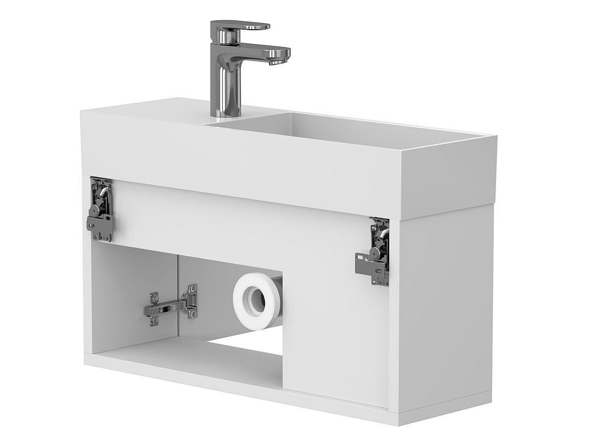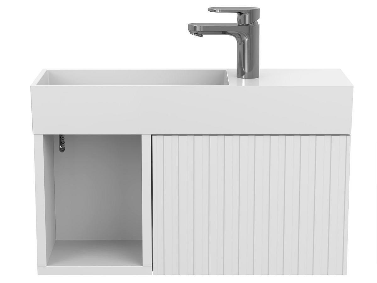 *Внимание! Тумба поставляется в комплекте с раковиной, однако сифон и смеситель не входят в базовую комплектацию — их необходимо приобрести отдельно. На изображении эти элементы добавлены для полного визуального понимания внешнего вида изделия.