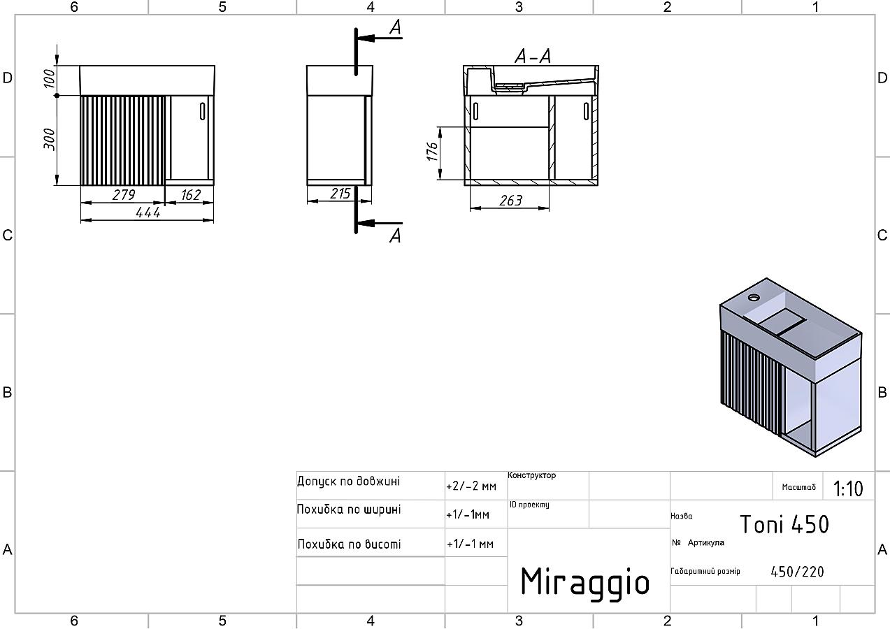 Документація Тумба подвесная AURA белая soft-touch с умывальником TONI 450