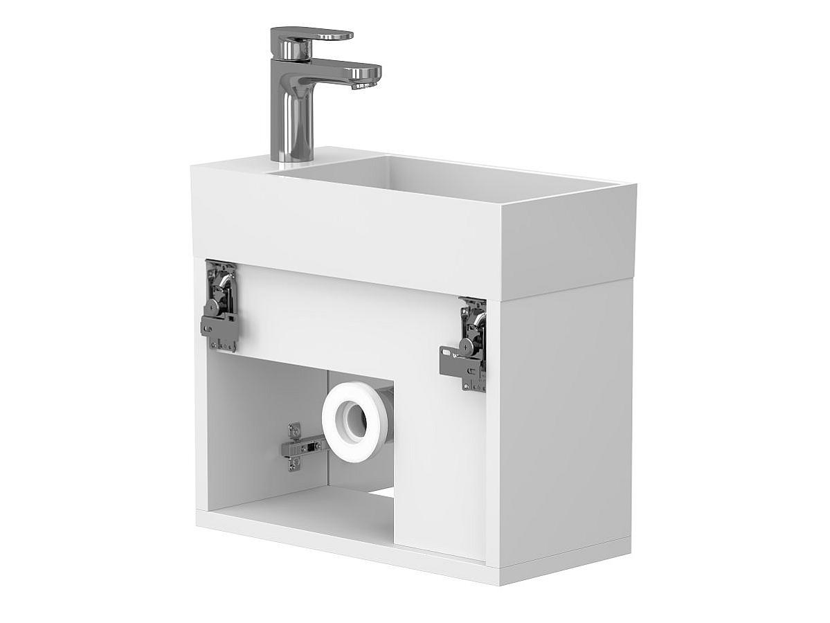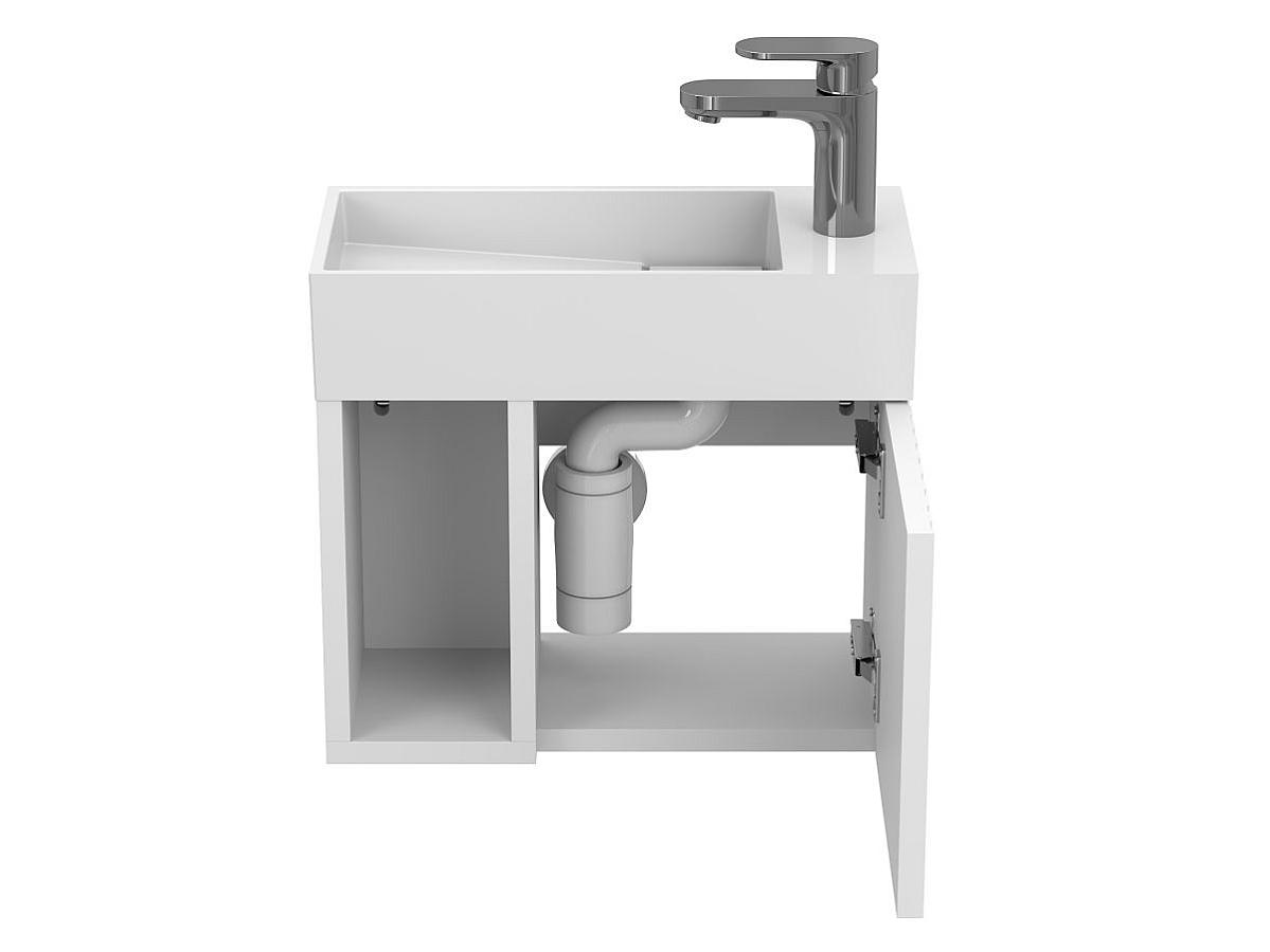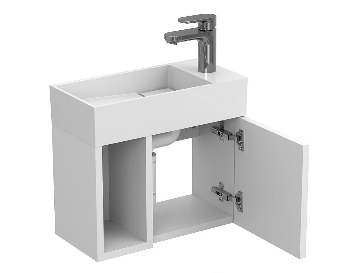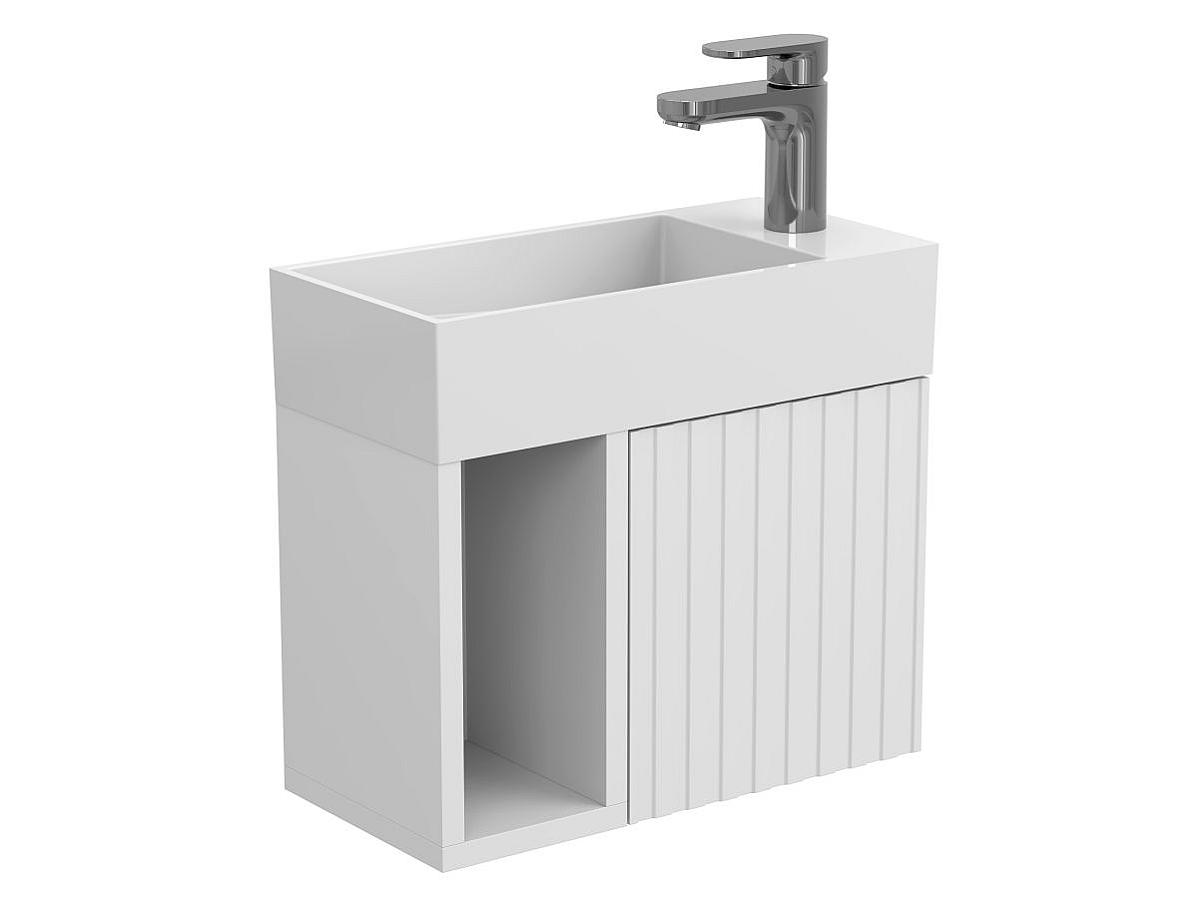 *Внимание! Тумба поставляется в комплекте с раковиной, однако сифон и смеситель не входят в базовую комплектацию — их необходимо приобрести отдельно. На изображении эти элементы добавлены для полного визуального понимания внешнего вида изделия.