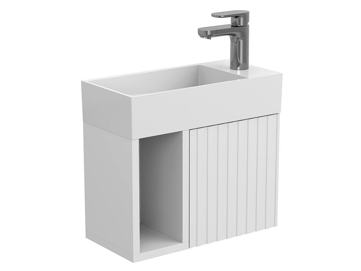 Тумба подвесная AURA белая soft-touch с умывальником TONI 450