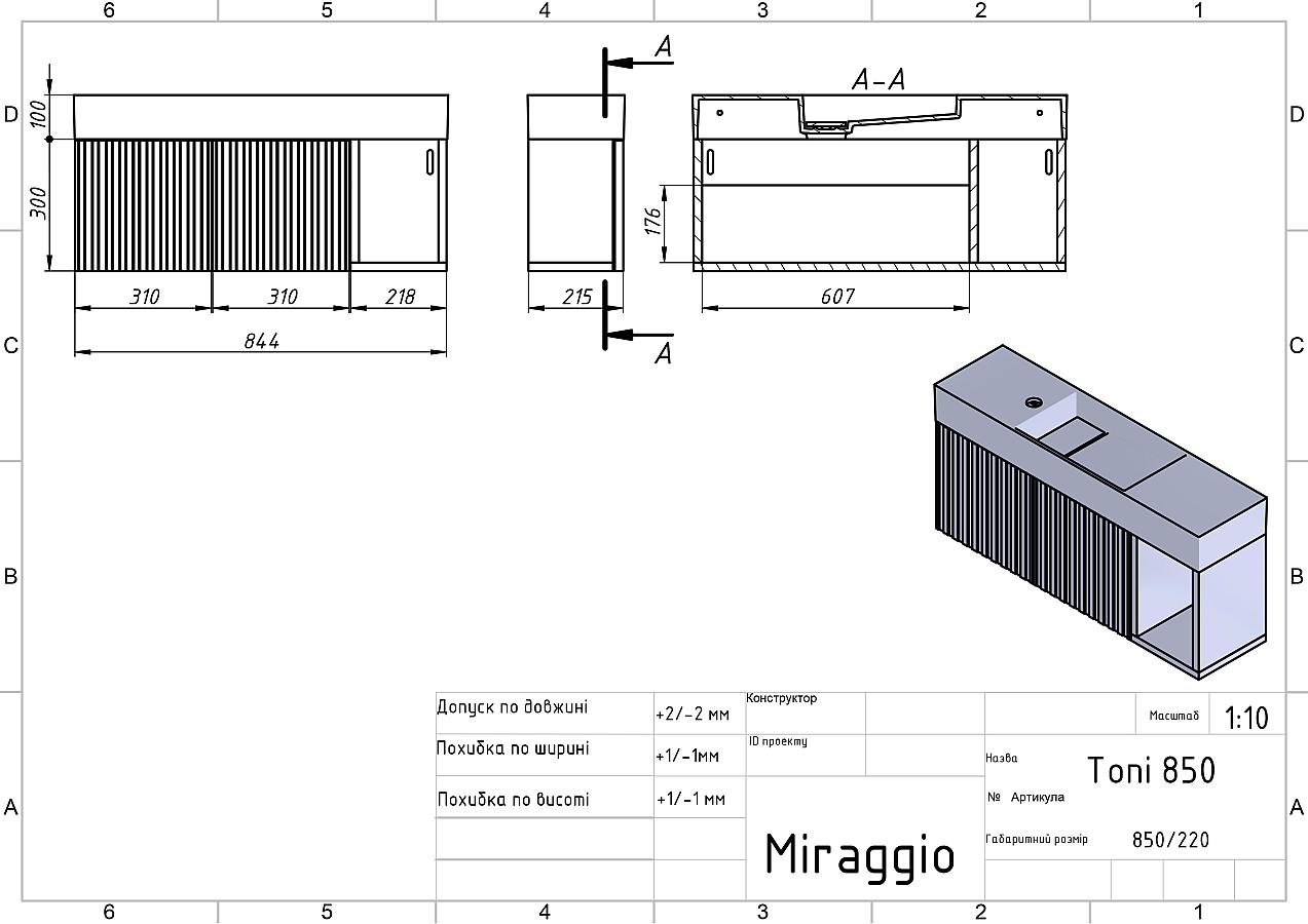 Документація Тумба подвесная AURA белая soft-touch с умывальником TONI 850