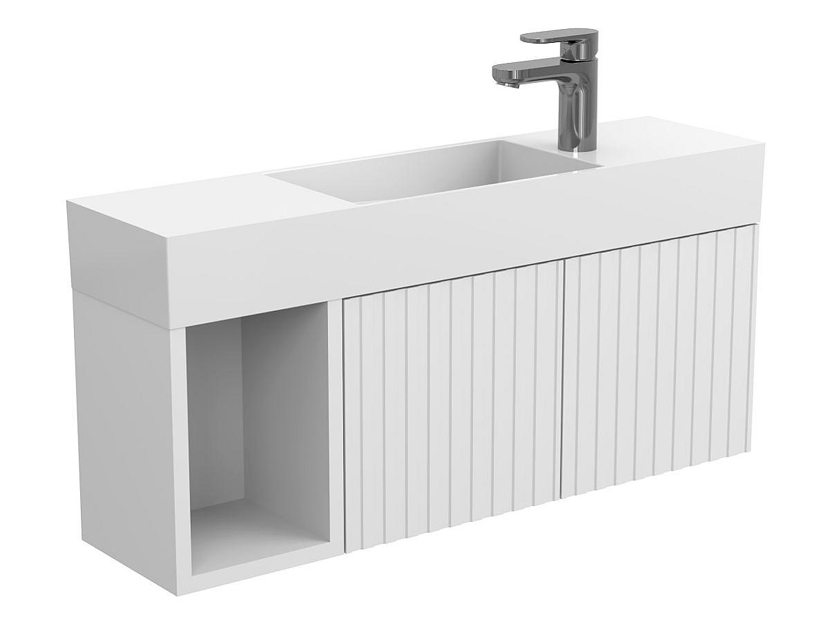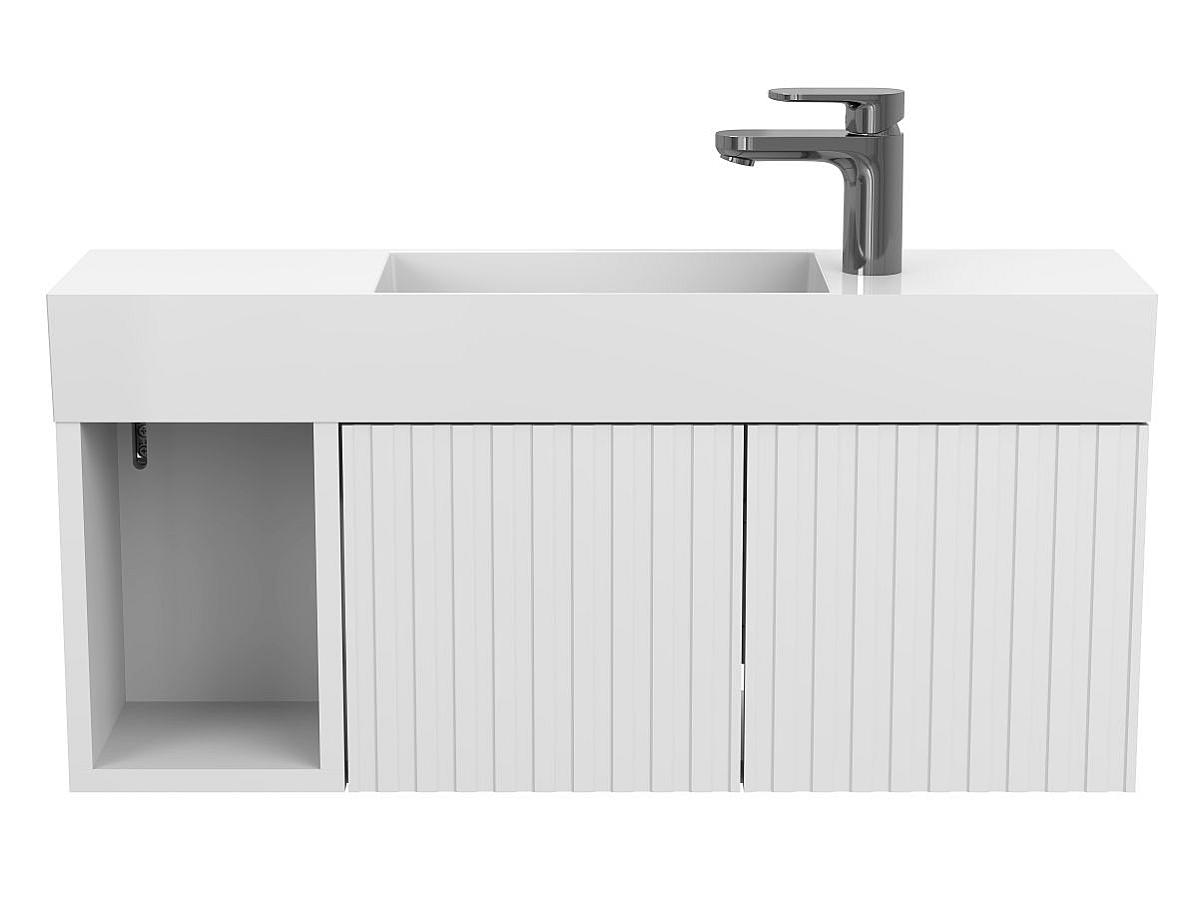 Тумба подвесная AURA белая soft-touch с умывальником TONI 850