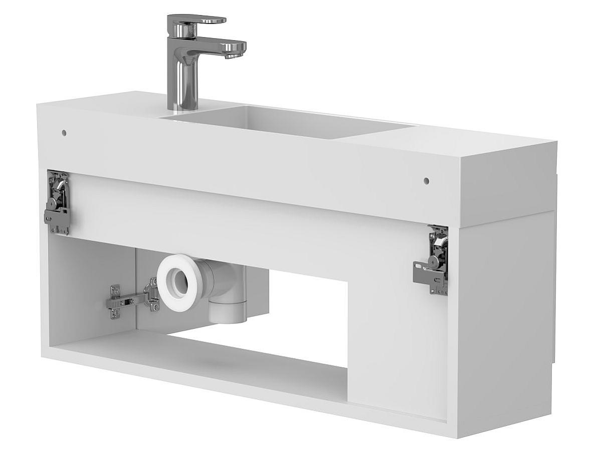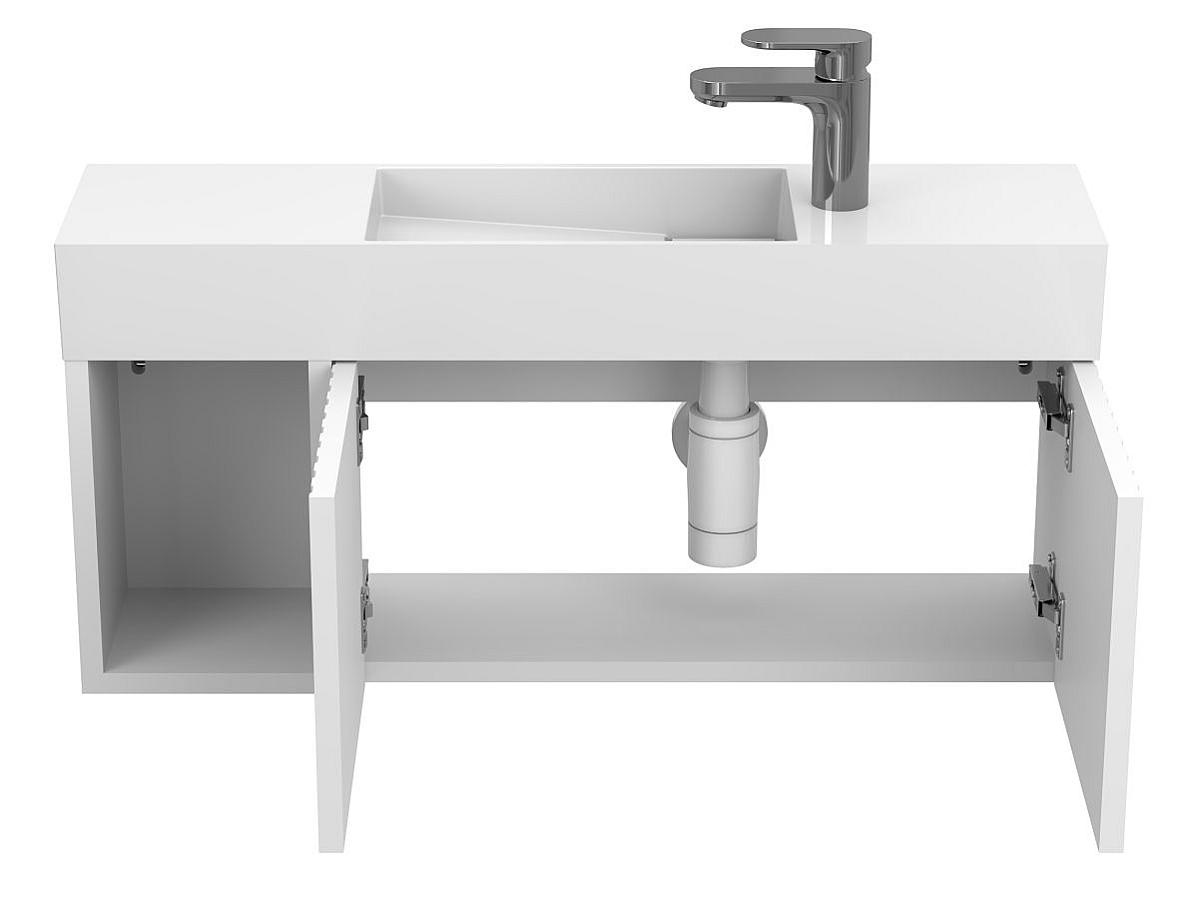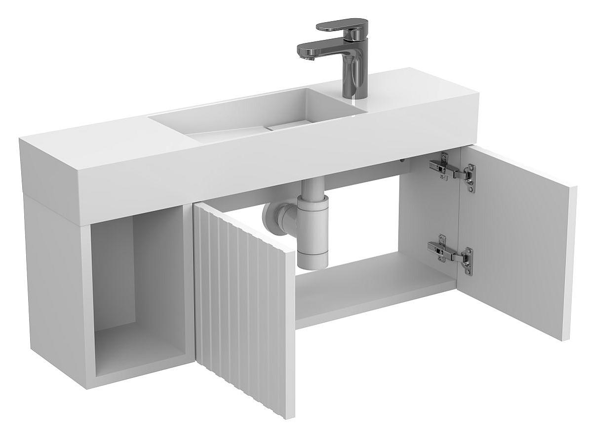 *Внимание! Тумба поставляется в комплекте с раковиной, однако сифон и смеситель не входят в базовую комплектацию — их необходимо приобрести отдельно. На изображении эти элементы добавлены для полного визуального понимания внешнего вида изделия.