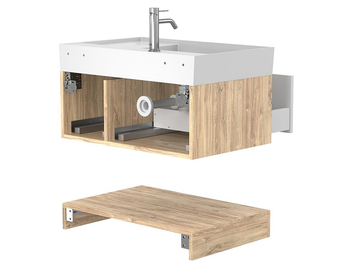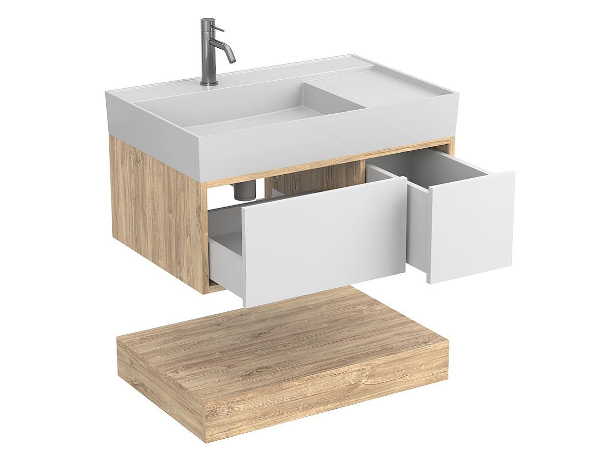 *Внимание! Тумба поставляется в комплекте с раковиной, однако сифон и смеситель не входят в базовую комплектацию — их необходимо приобрести отдельно. На изображении эти элементы добавлены для полного визуального восприятия внешнего вида изделия.