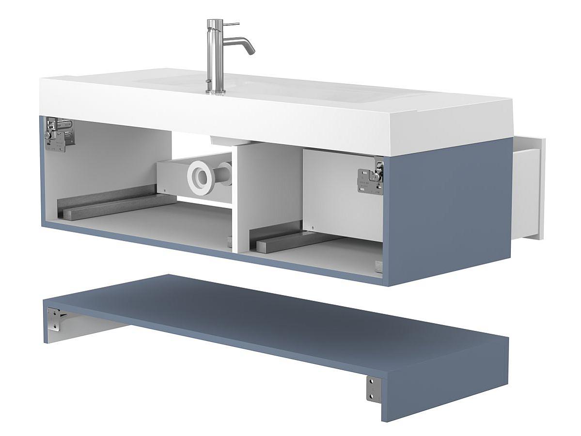 Для производства корпуса и фасадов использован влагостойкий МДФ или ДСП с лазерной кромкой и качественным лакокрасочным покрытием или акриловым ламинированием. Это гарантирует долговечность и сохранение внешнего вида даже при повышенной влажности.