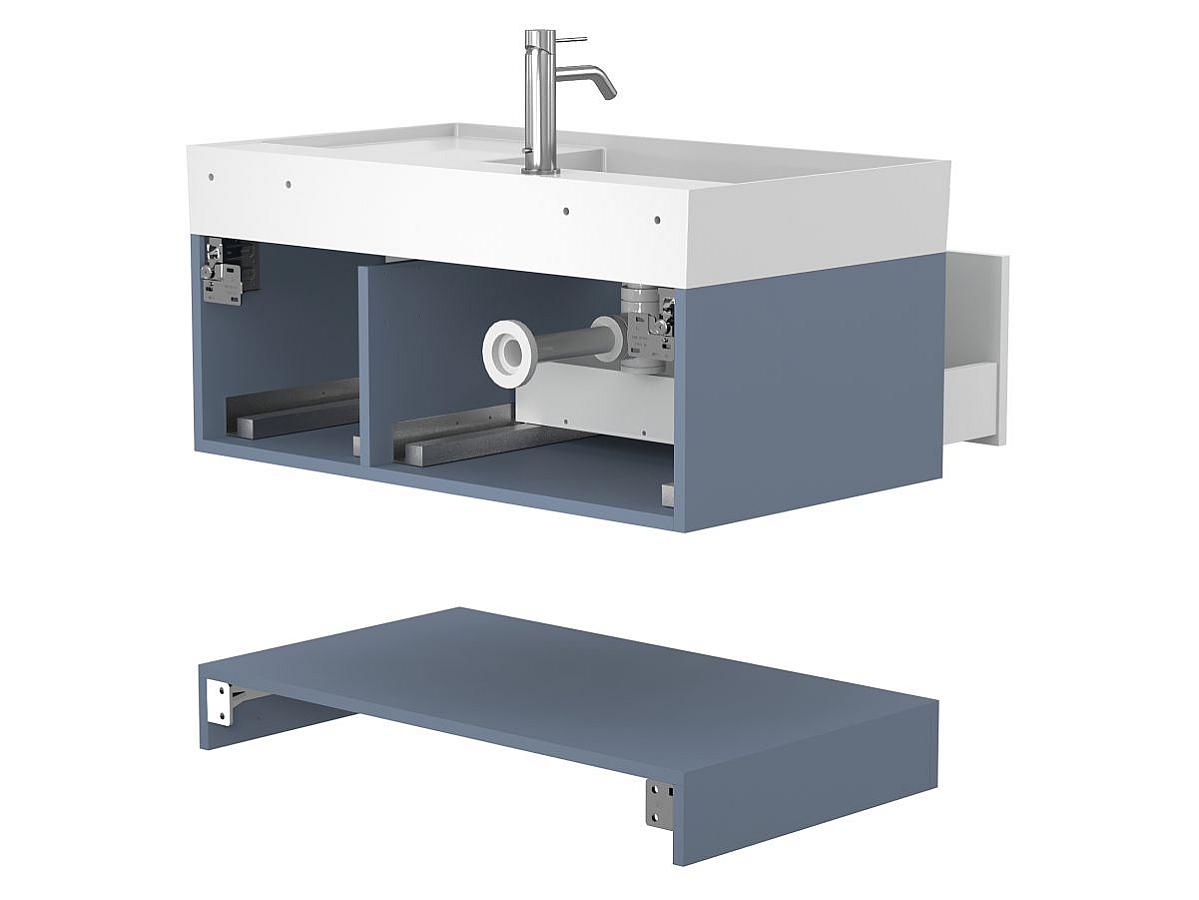 Для производства корпуса и фасадов использован влагостойкий МДФ или ДСП с лазерной кромкой и качественным лакокрасочным покрытием или акриловым ламинированием. Это гарантирует долговечность и сохранение внешнего вида даже при повышенной влажности.