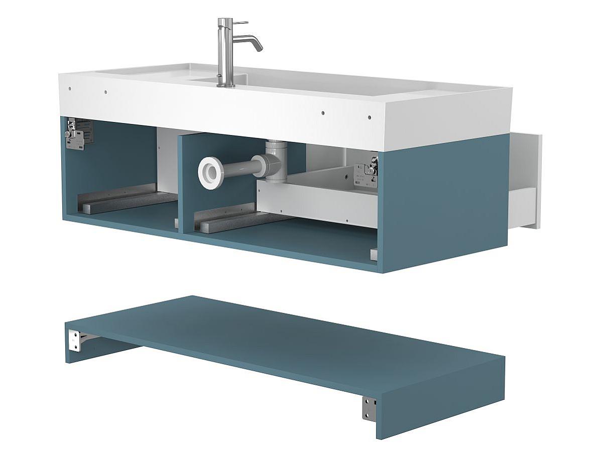Для производства корпуса и фасадов использован влагостойкий МДФ или ДСП с лазерной кромкой и качественным лакокрасочным покрытием или акриловым ламинированием. Это гарантирует долговечность и сохранение внешнего вида даже при повышенной влажности.