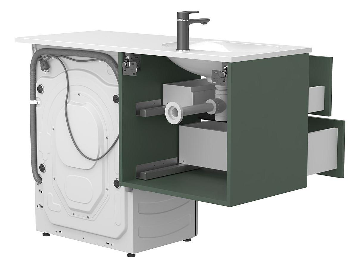 * Тумба поставляется в комплекте с умывальником. Стиральная машина не входит в комплект и представлена на изображении исключительно в качестве примера интеграции.