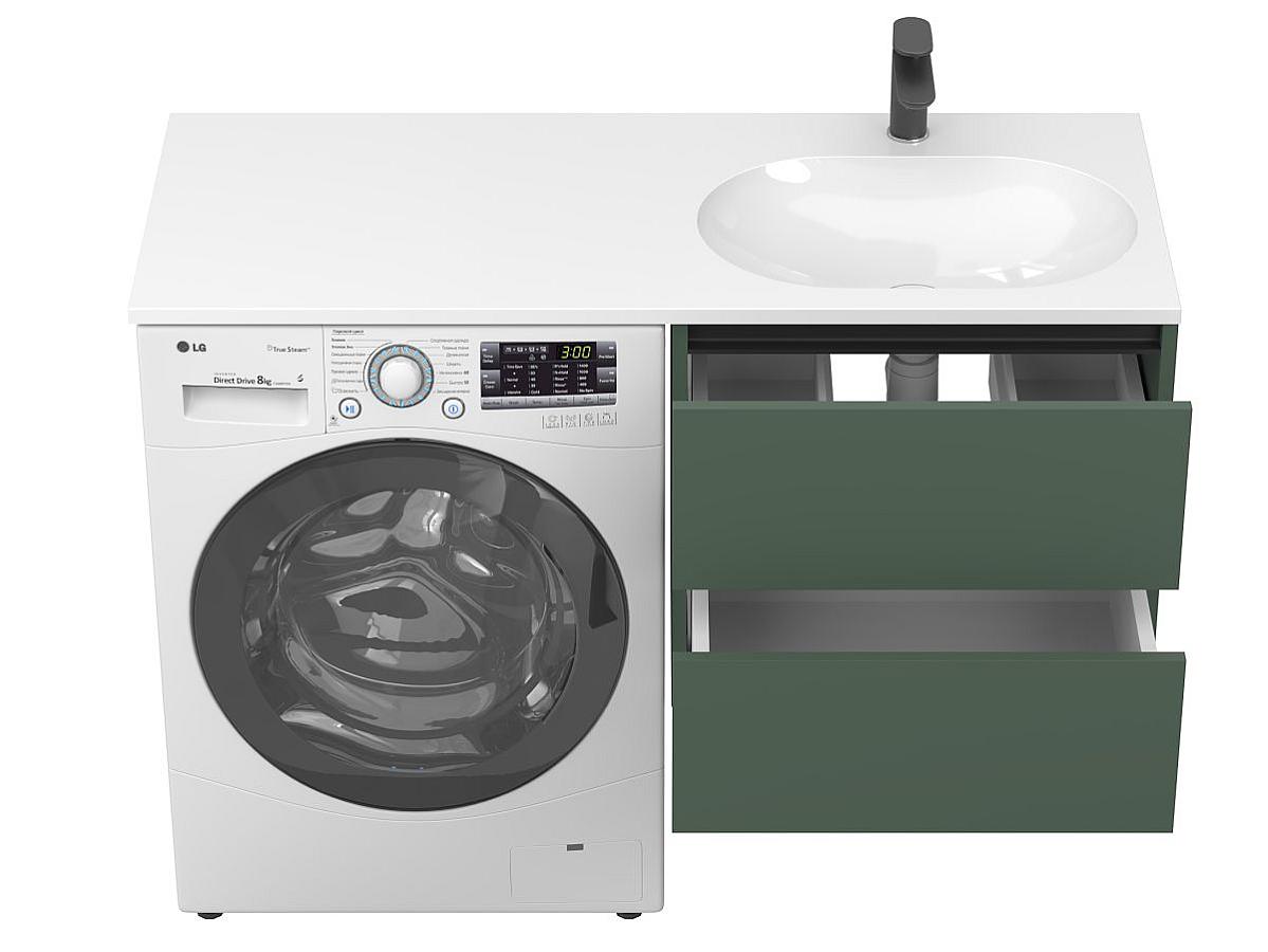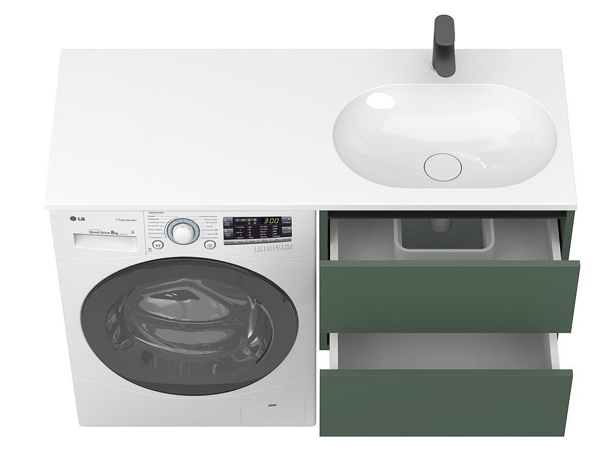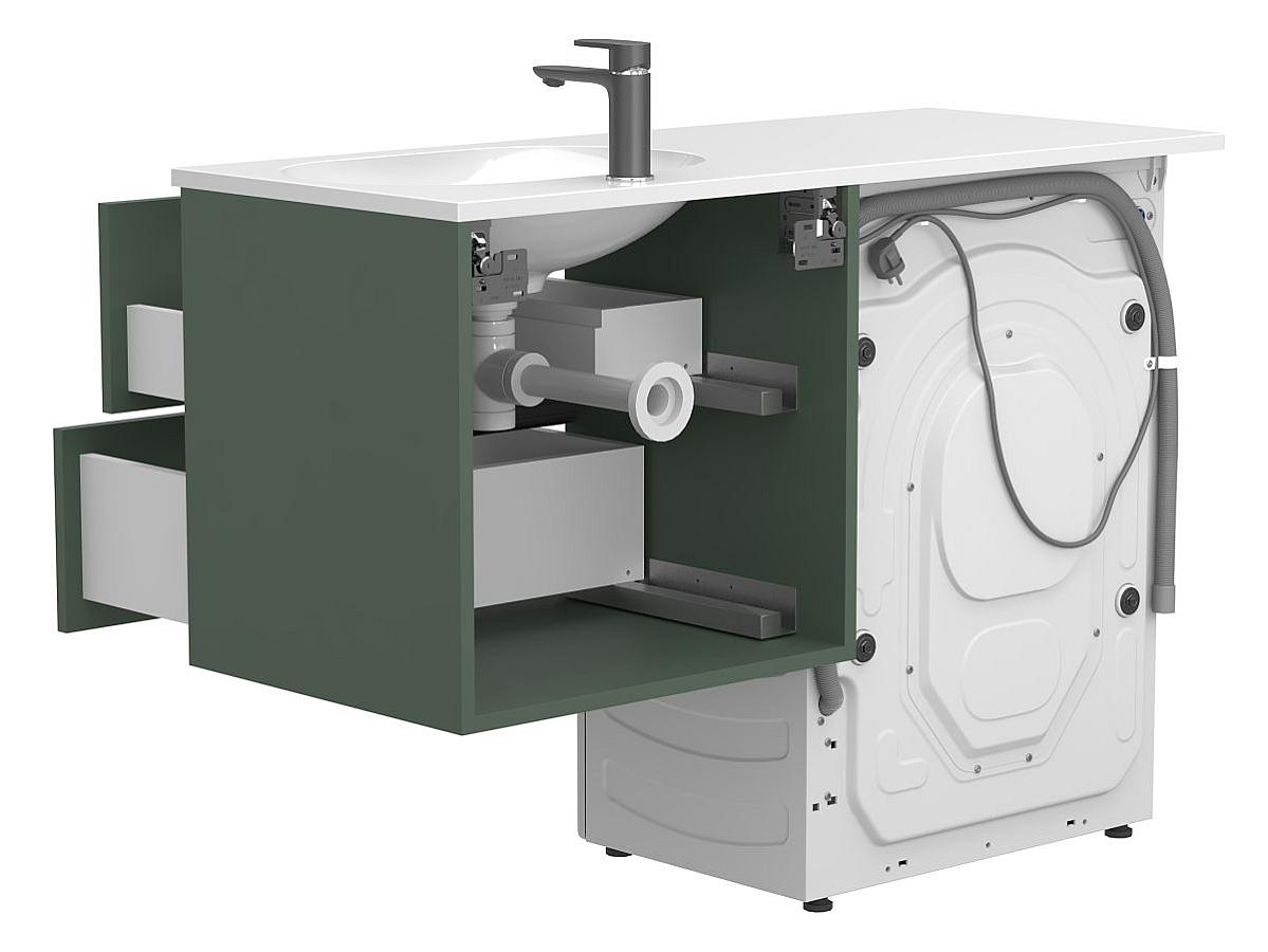 * Тумба поставляется в комплекте с умывальником. Стиральная машина не входит в комплект и представлена на изображении исключительно в качестве примера интеграции.