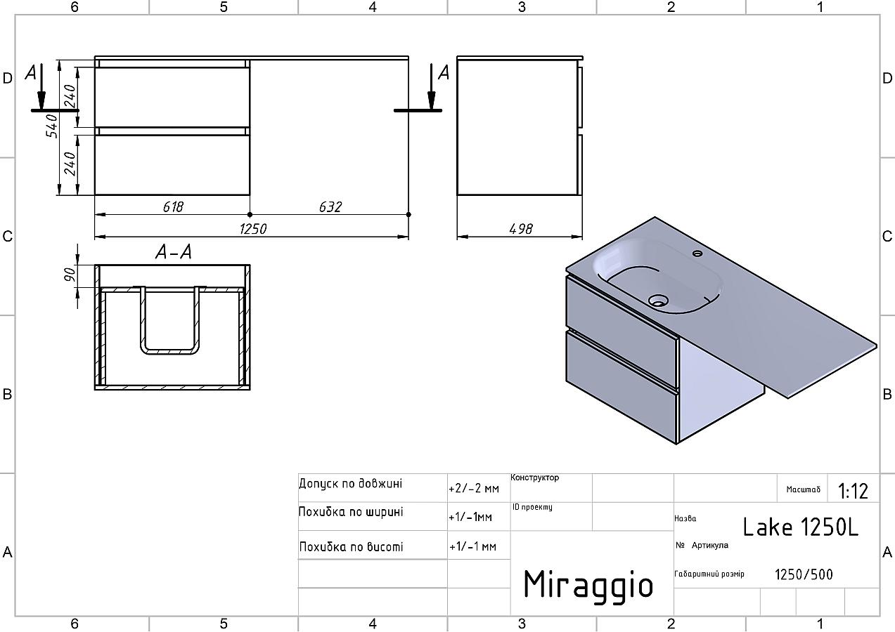 Документація Тумба подвесная LUMO Белая глянцевая с умывальником LAKE 1250 L