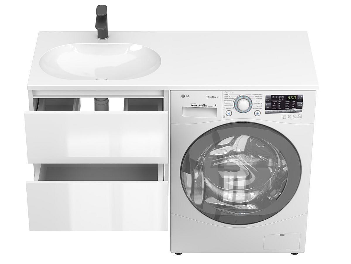 * Тумба поставляется в комплекте с умывальником. Стиральная машина не входит в комплект и представлена на изображении исключительно в качестве примера интеграции.