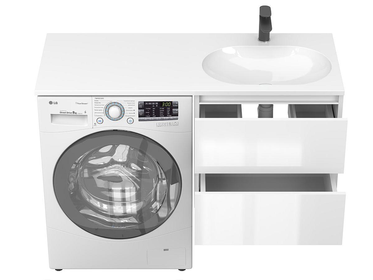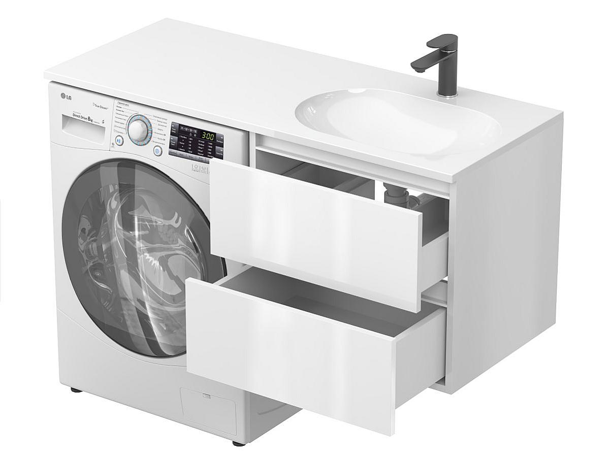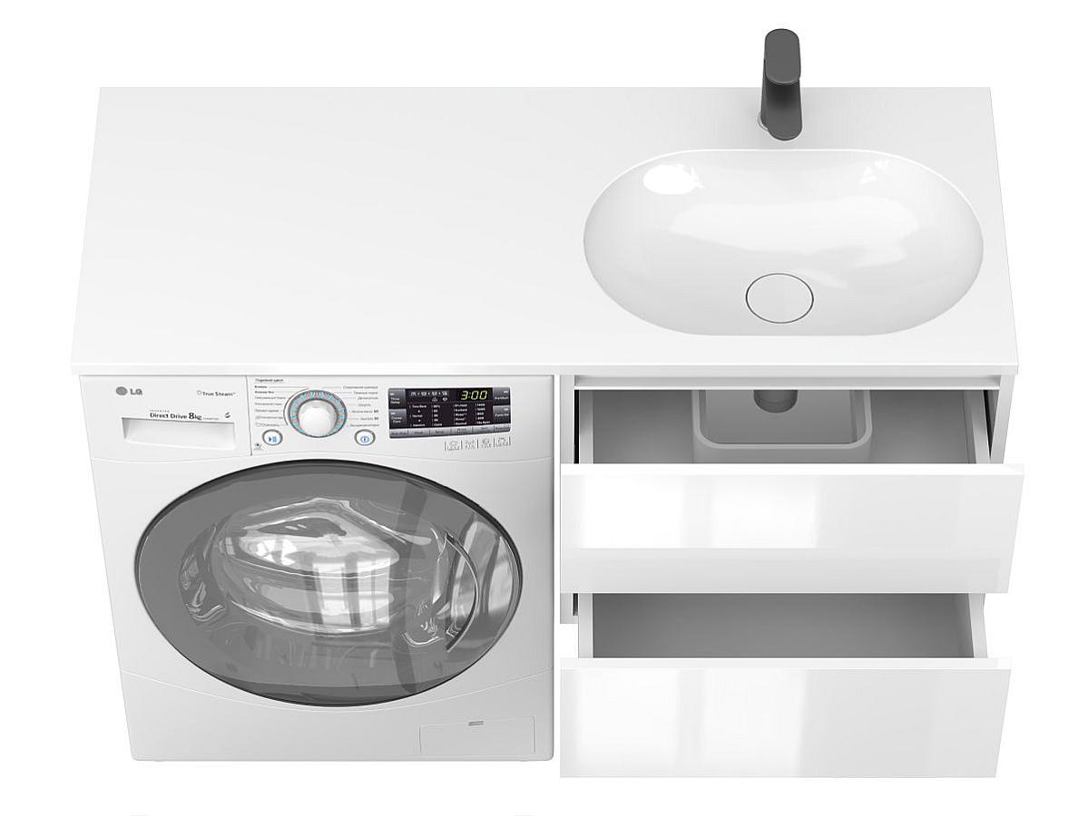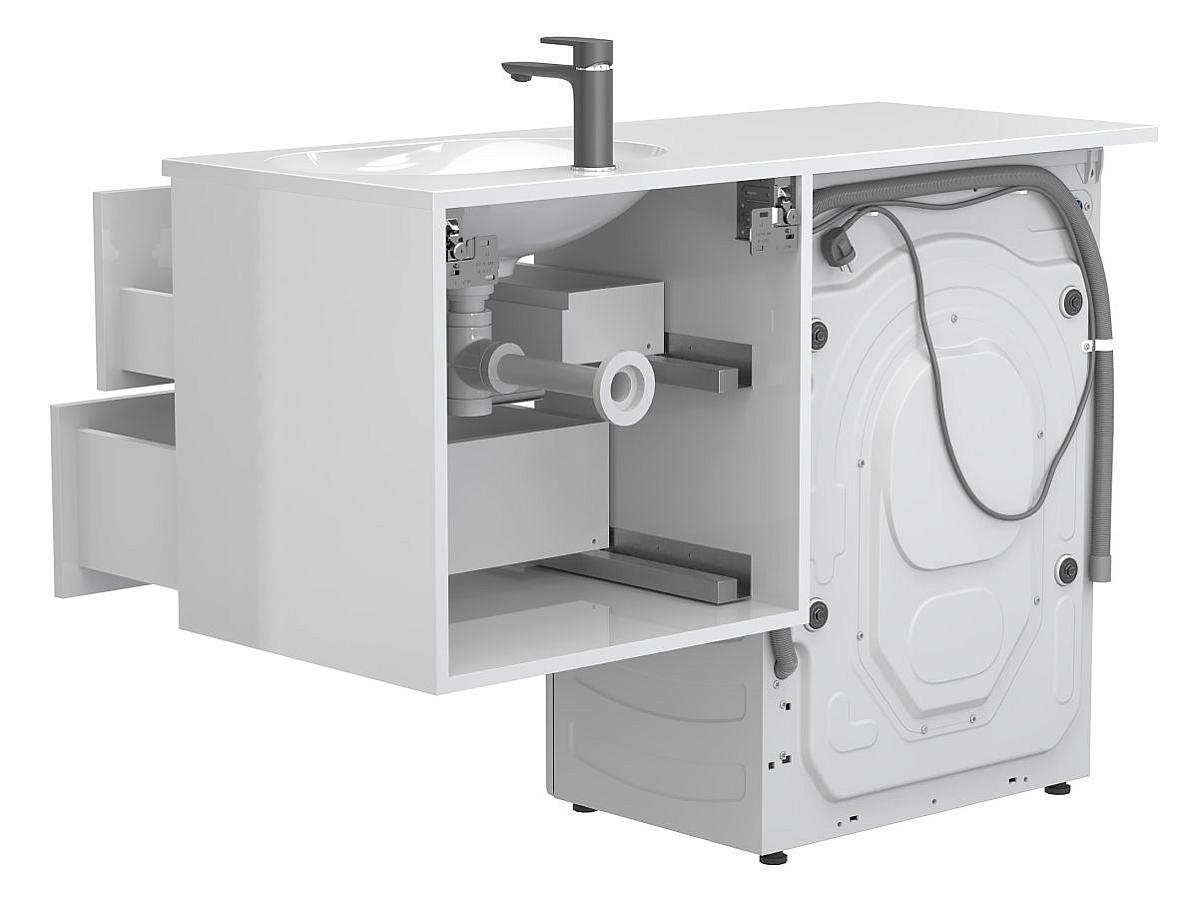 * Тумба поставляется в комплекте с умывальником. Стиральная машина не входит в комплект и представлена на изображении исключительно в качестве примера интеграции.