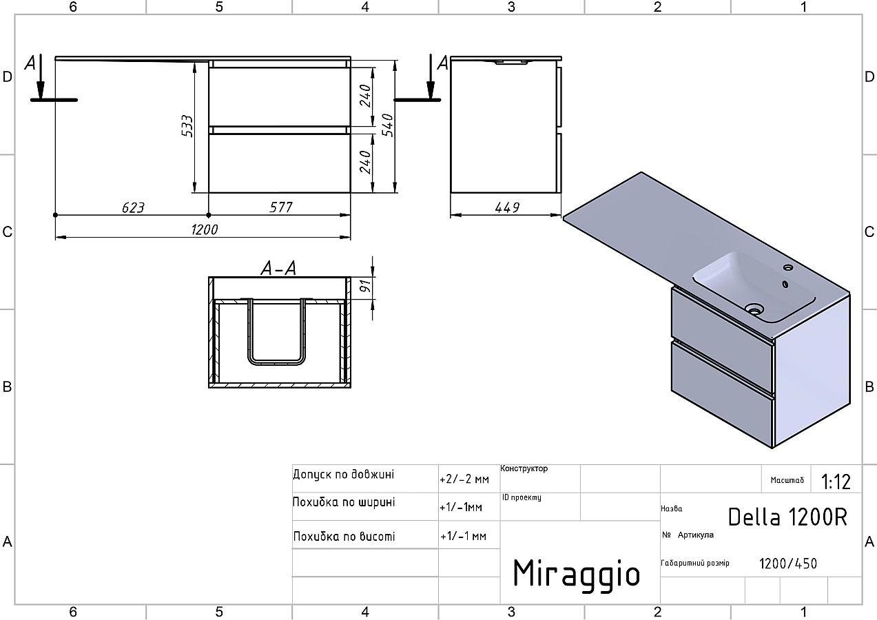 Документація Тумба подвесная LUMO Белая матовая с умывальником DELLA 1200 R