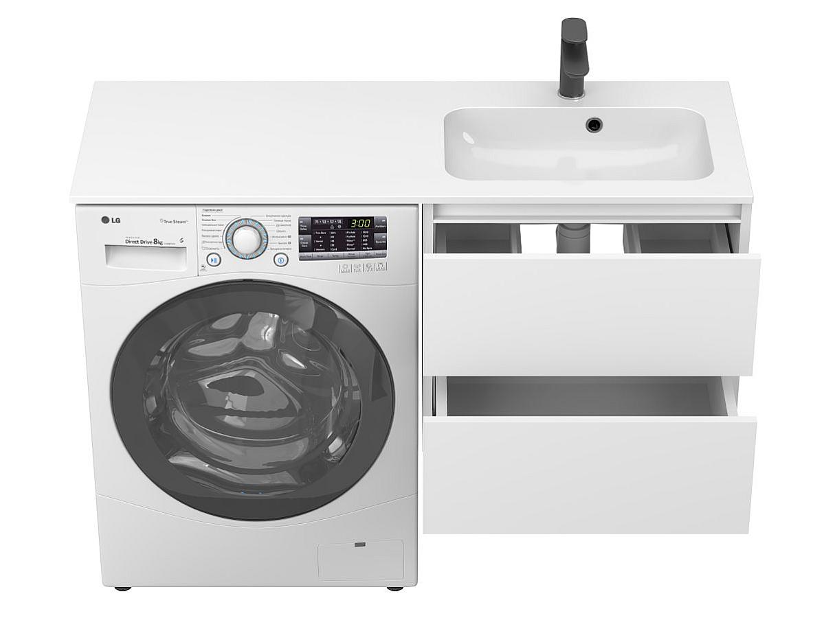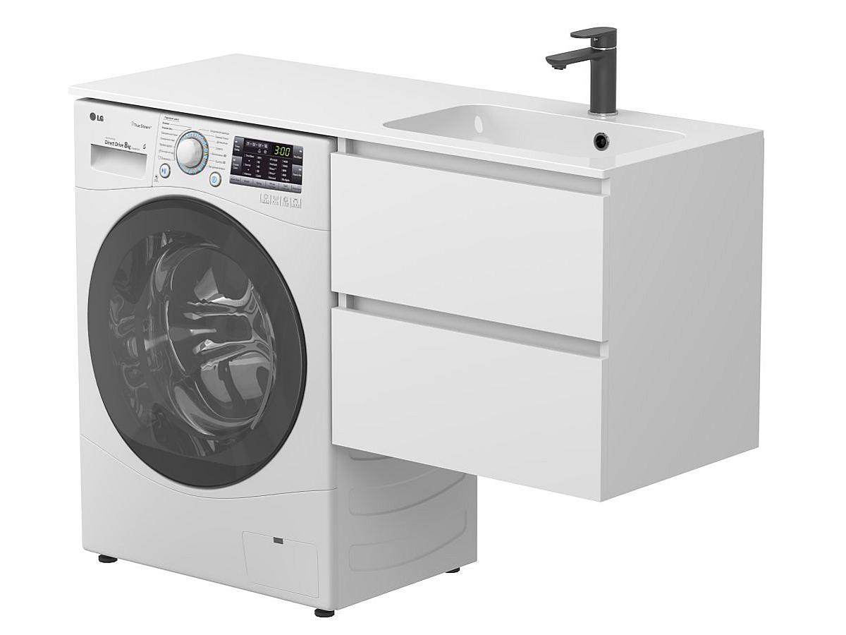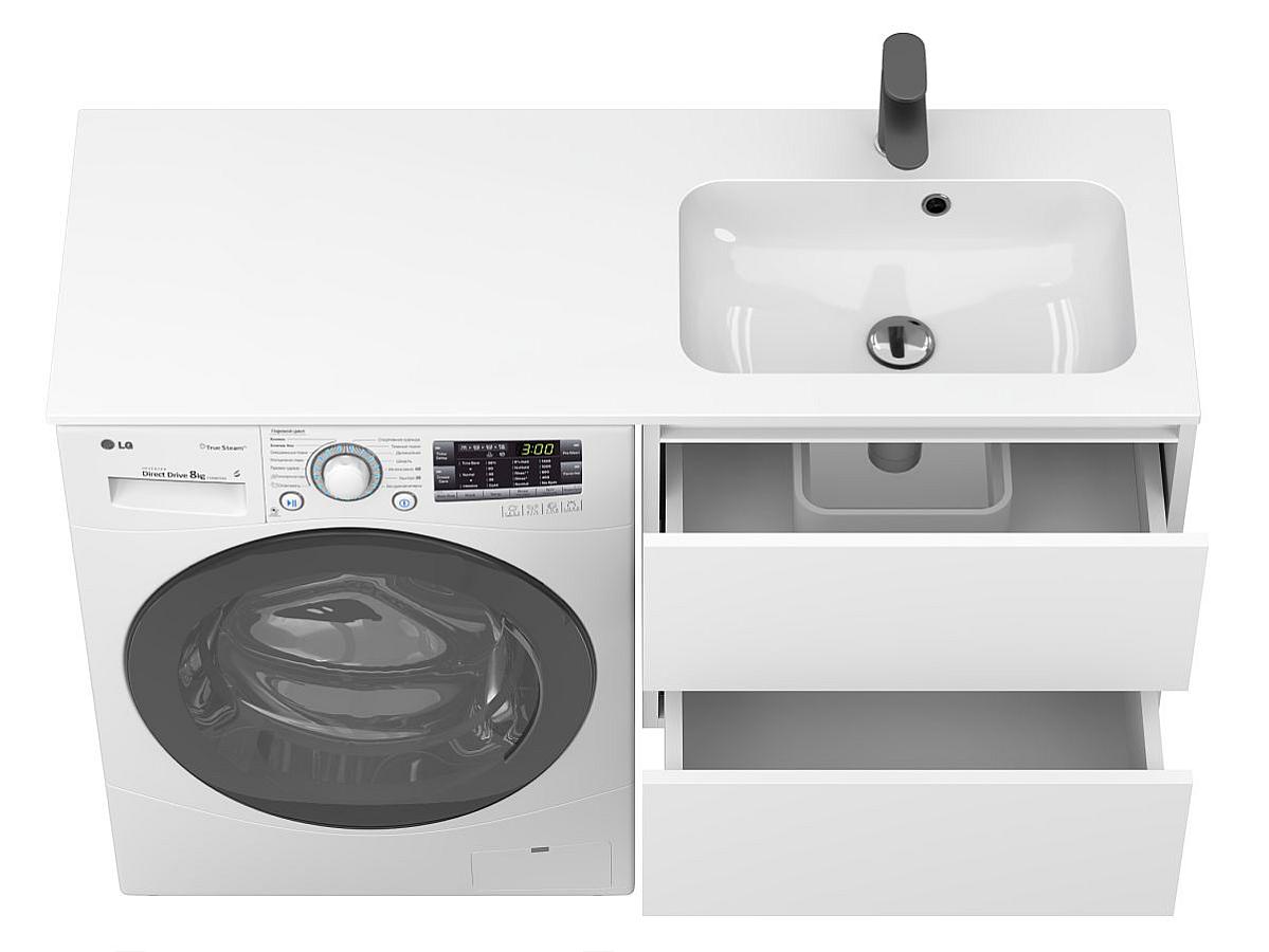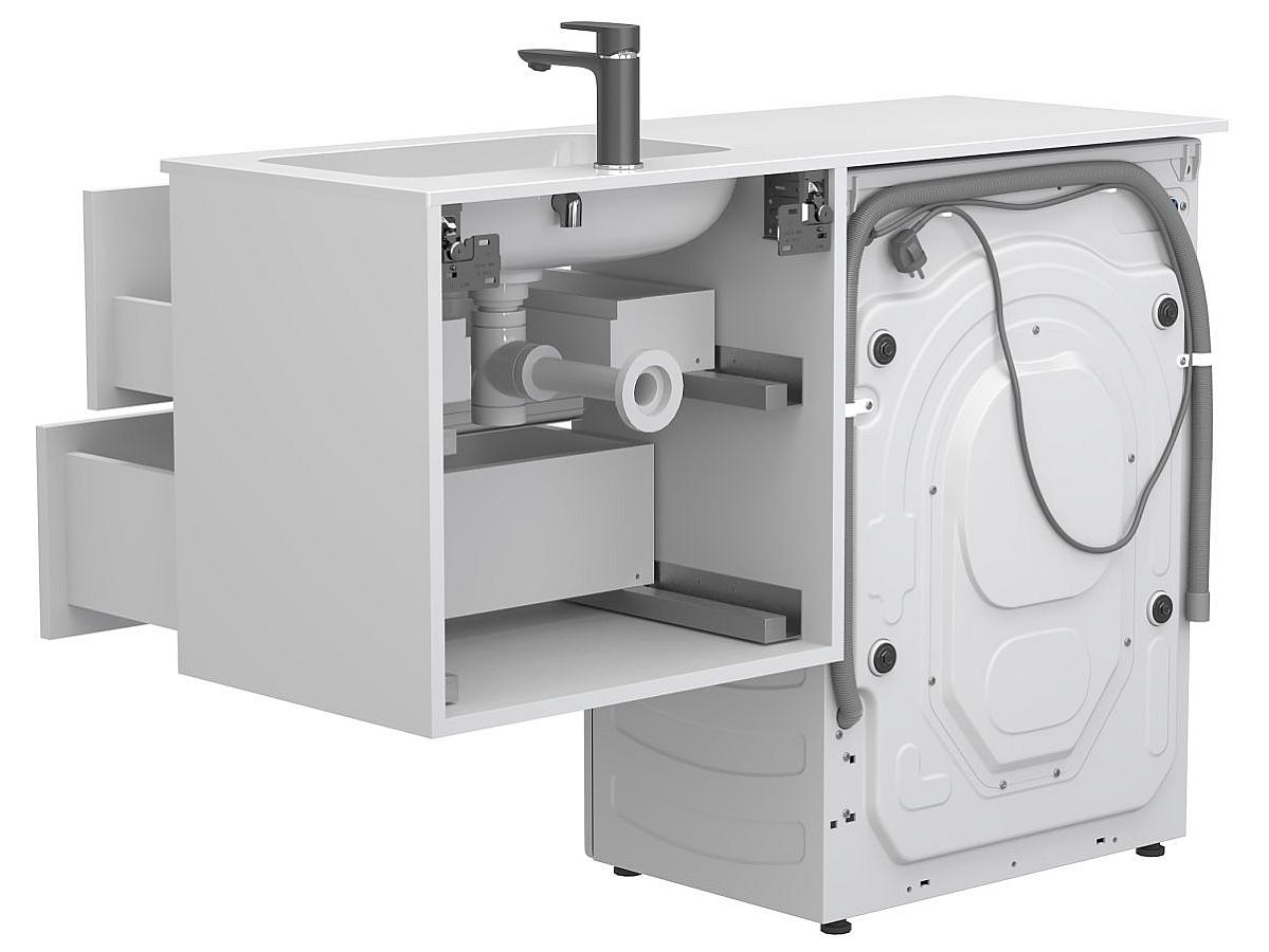 * Тумба поставляется в комплекте с умывальником. Стиральная машина не входит в комплект и представлена на изображении исключительно в качестве примера интеграции.