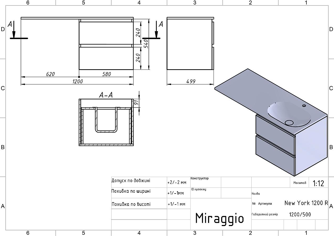Документація Тумба подвесная LUMO Белая матовая с умывальником NEW YORK 1200 R