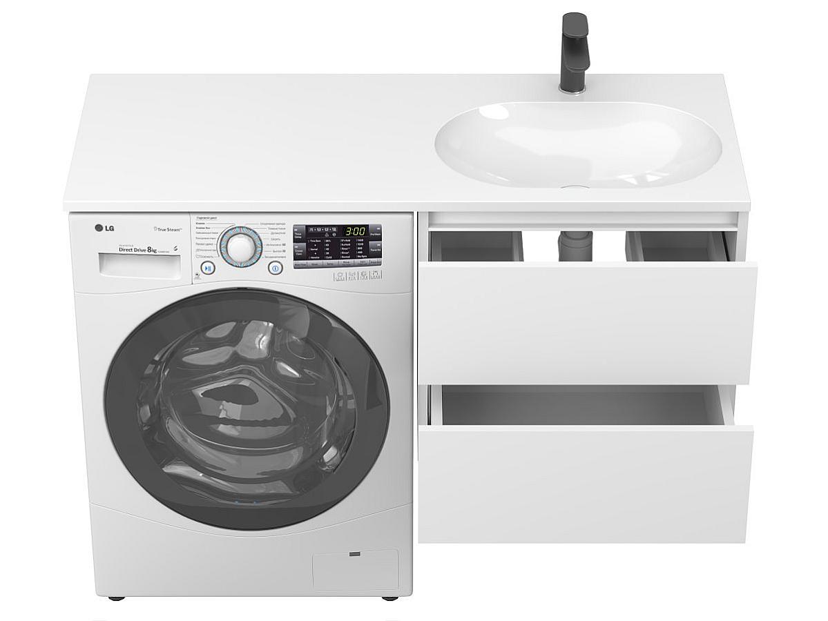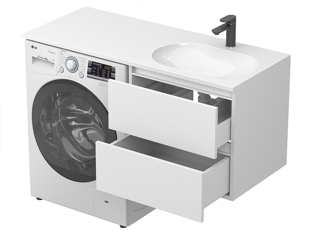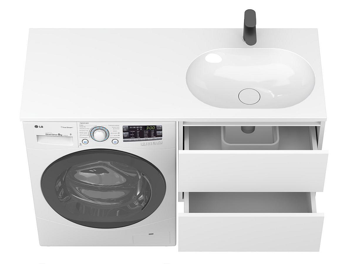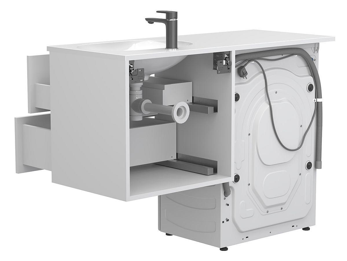 * Тумба поставляется в комплекте с умывальником. Стиральная машина не входит в комплект и представлена на изображении исключительно в качестве примера интеграции.