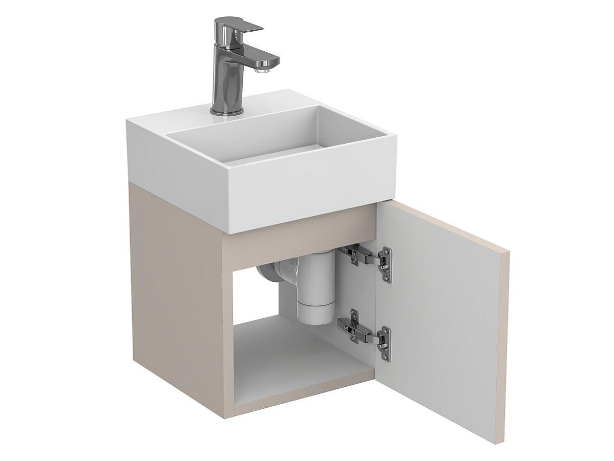 • Идеально для небольших пространств. Компактные размеры тумб позволяют разместить их в гостевых или дополнительных санузлах, а также в ванных комнатах небольшой площади — без потери комфорта использования.