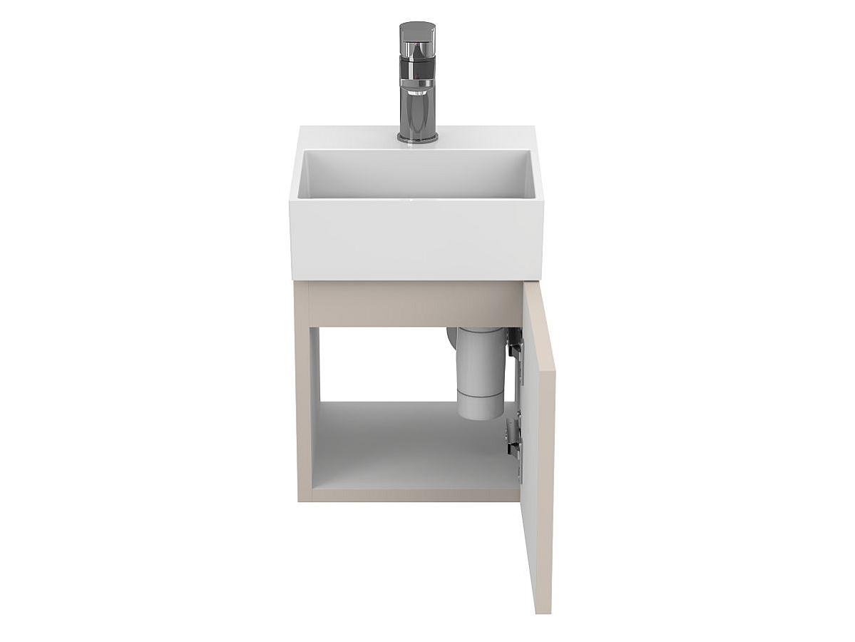 *Внимание! Тумба поставляется в комплекте с раковиной, однако сифон и смеситель не входят в базовую комплектацию — их необходимо приобрести отдельно. На изображении эти элементы добавлены для полного визуального понимания внешнего вида изделия.
