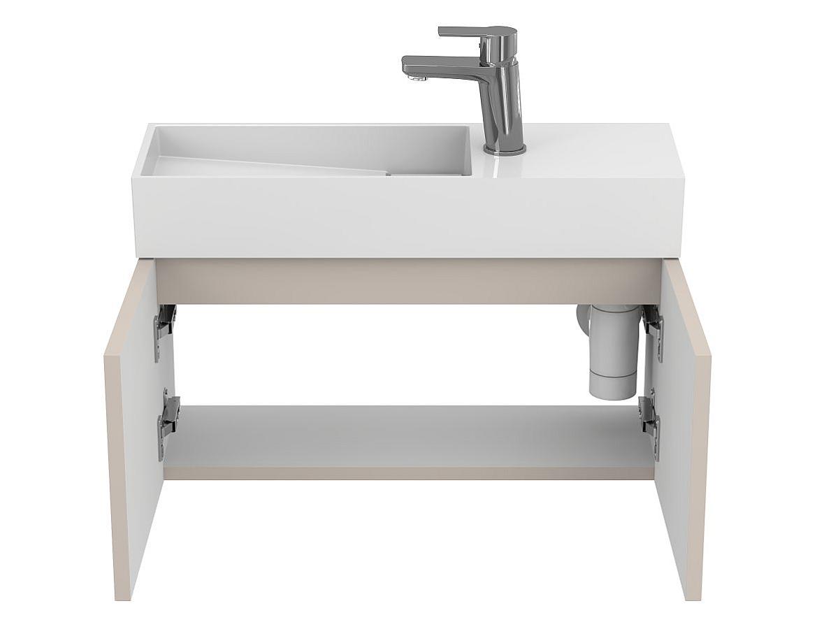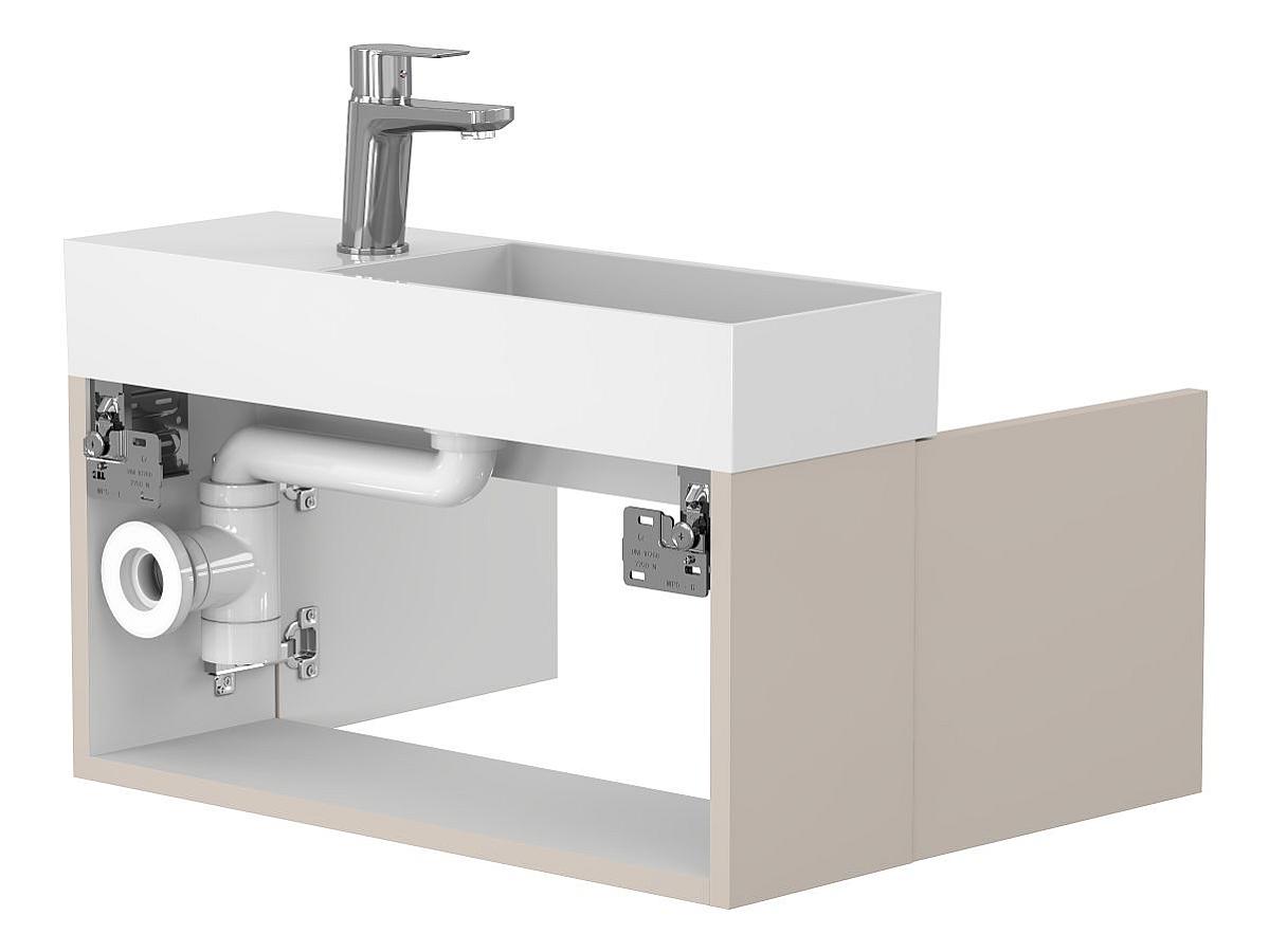 *Внимание! Тумба поставляется в комплекте с раковиной, однако сифон и смеситель не входят в базовую комплектацию — их необходимо приобрести отдельно. На изображении эти элементы добавлены для полного визуального понимания внешнего вида изделия.