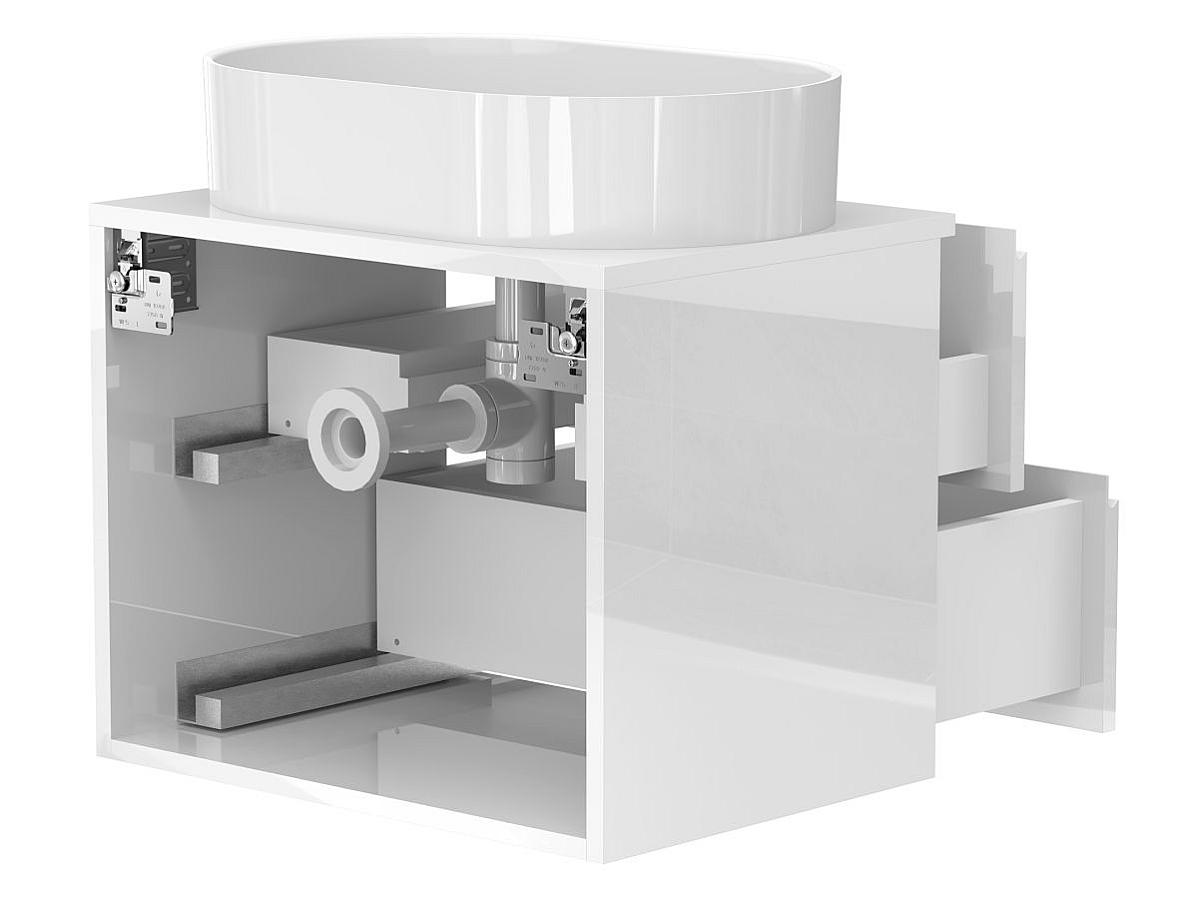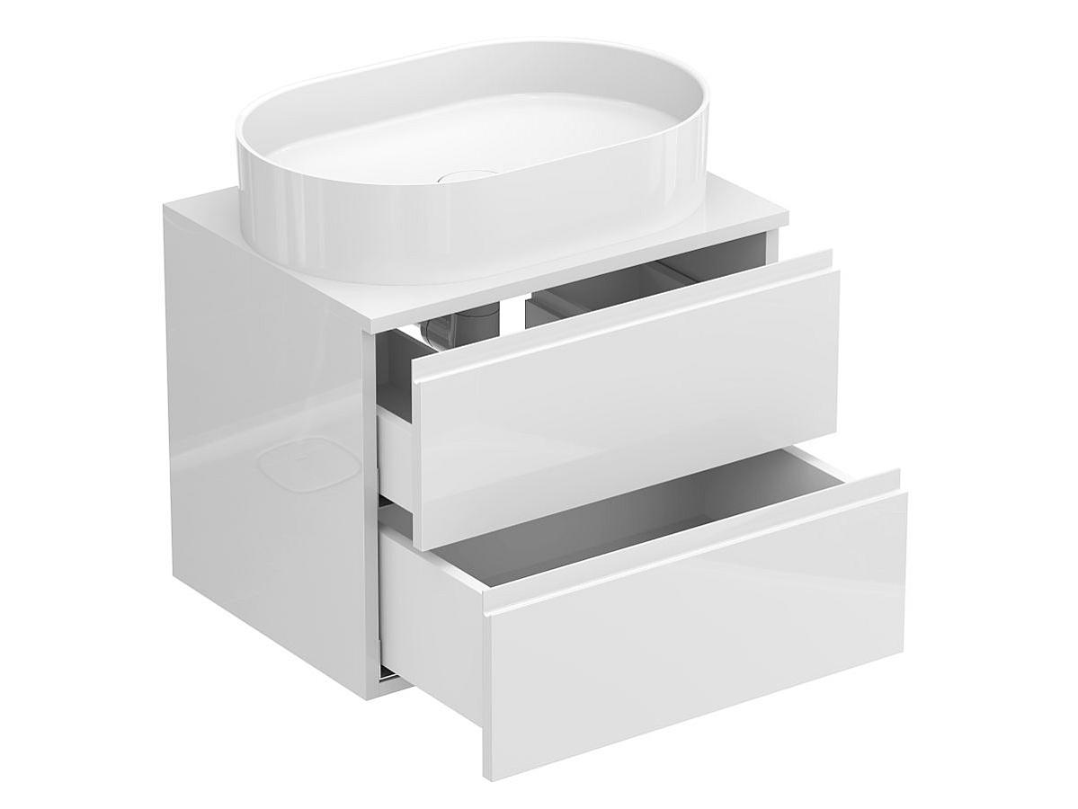 Тумба подвесная MONO 600 Белая глянцевая c умывальником KIRA