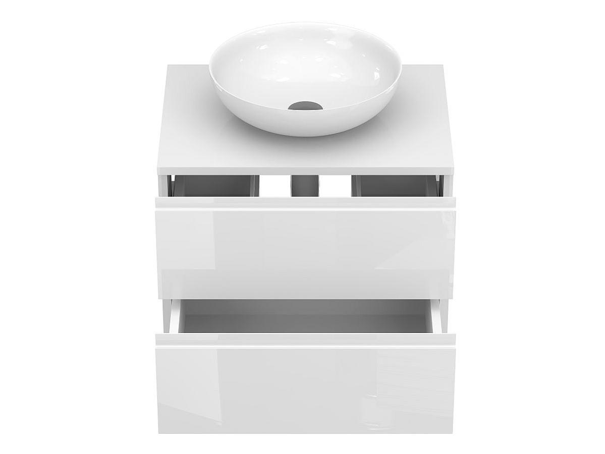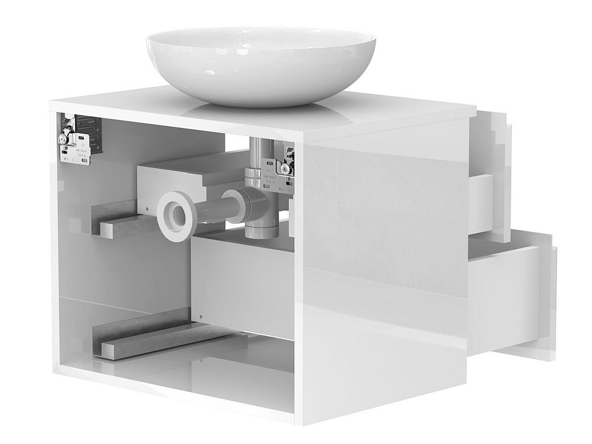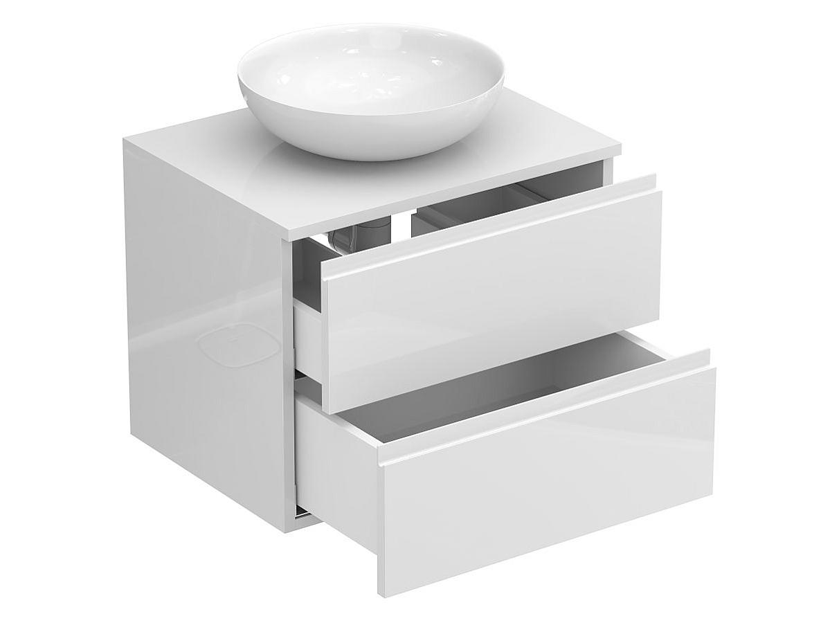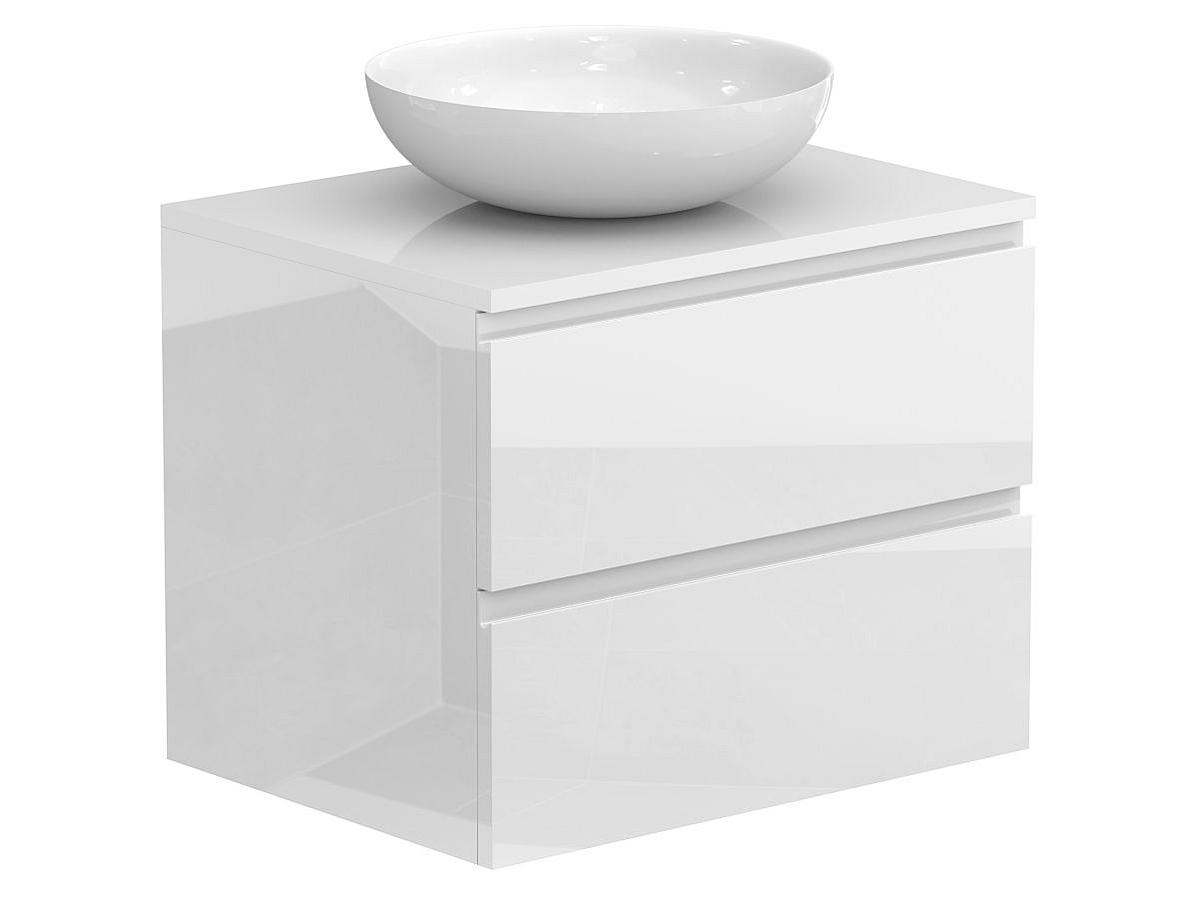 Тумба подвесная MONO 600 Белая глянцевая с умывальником TOBI