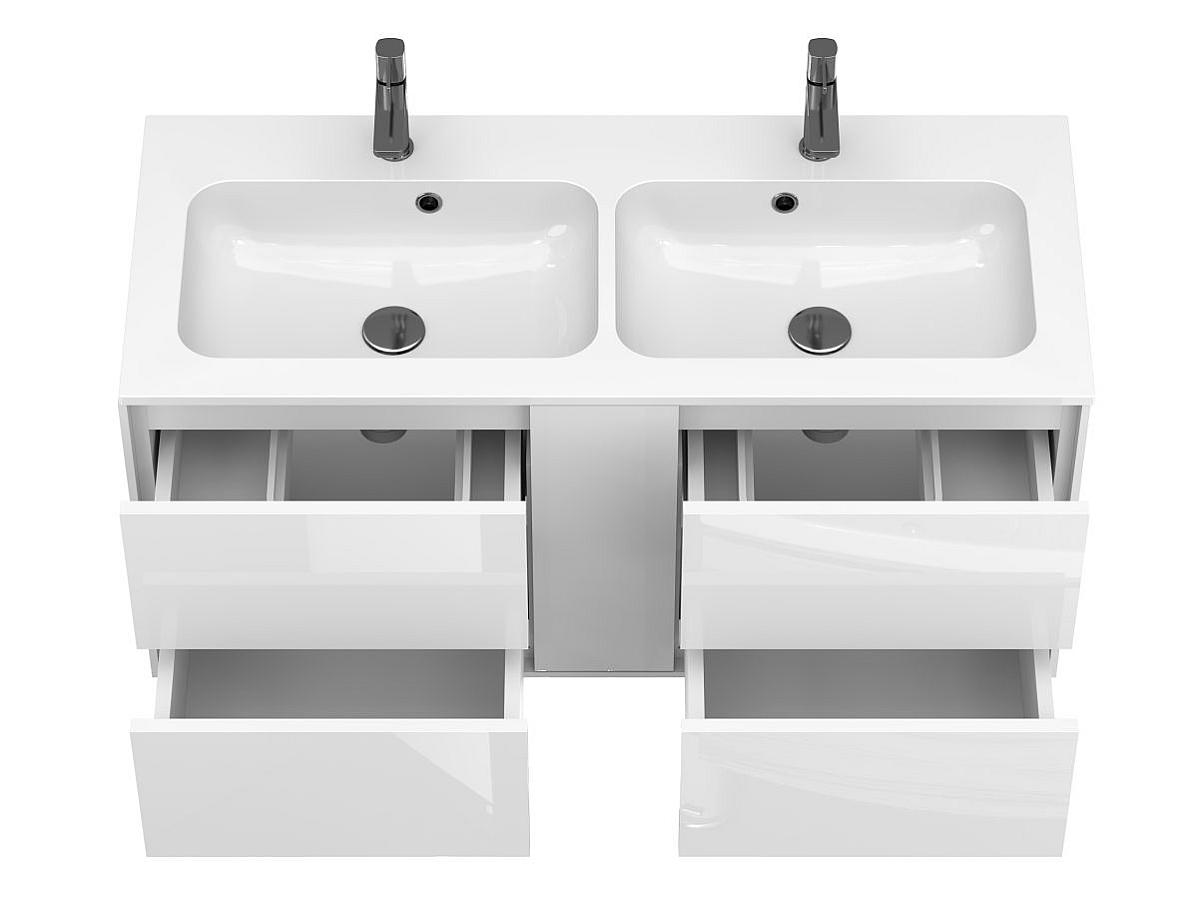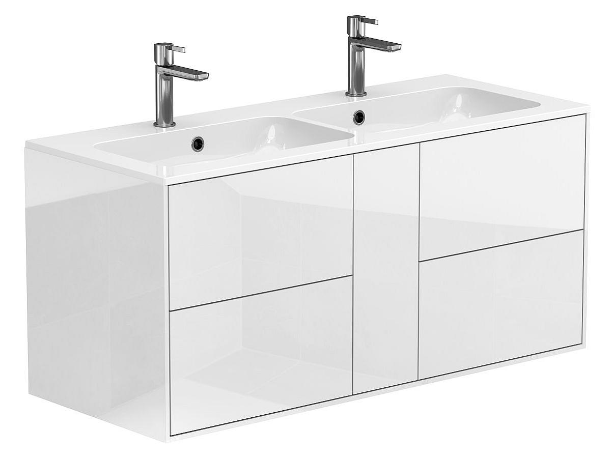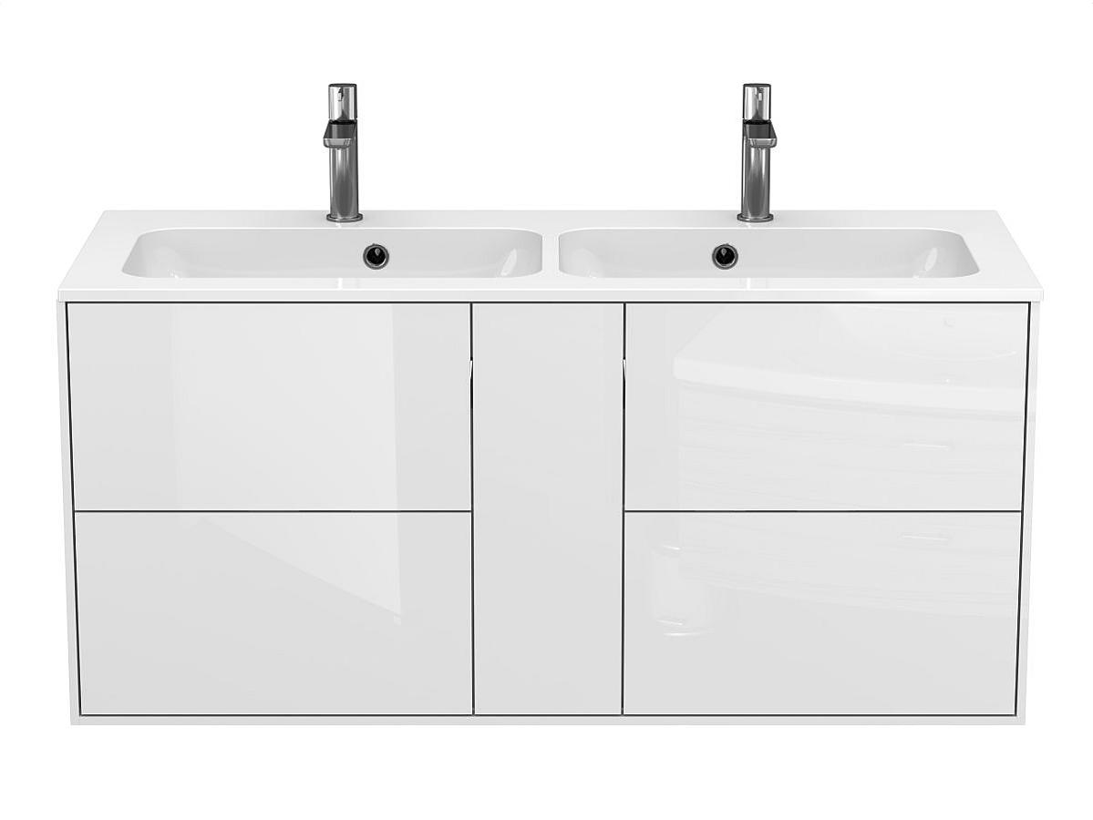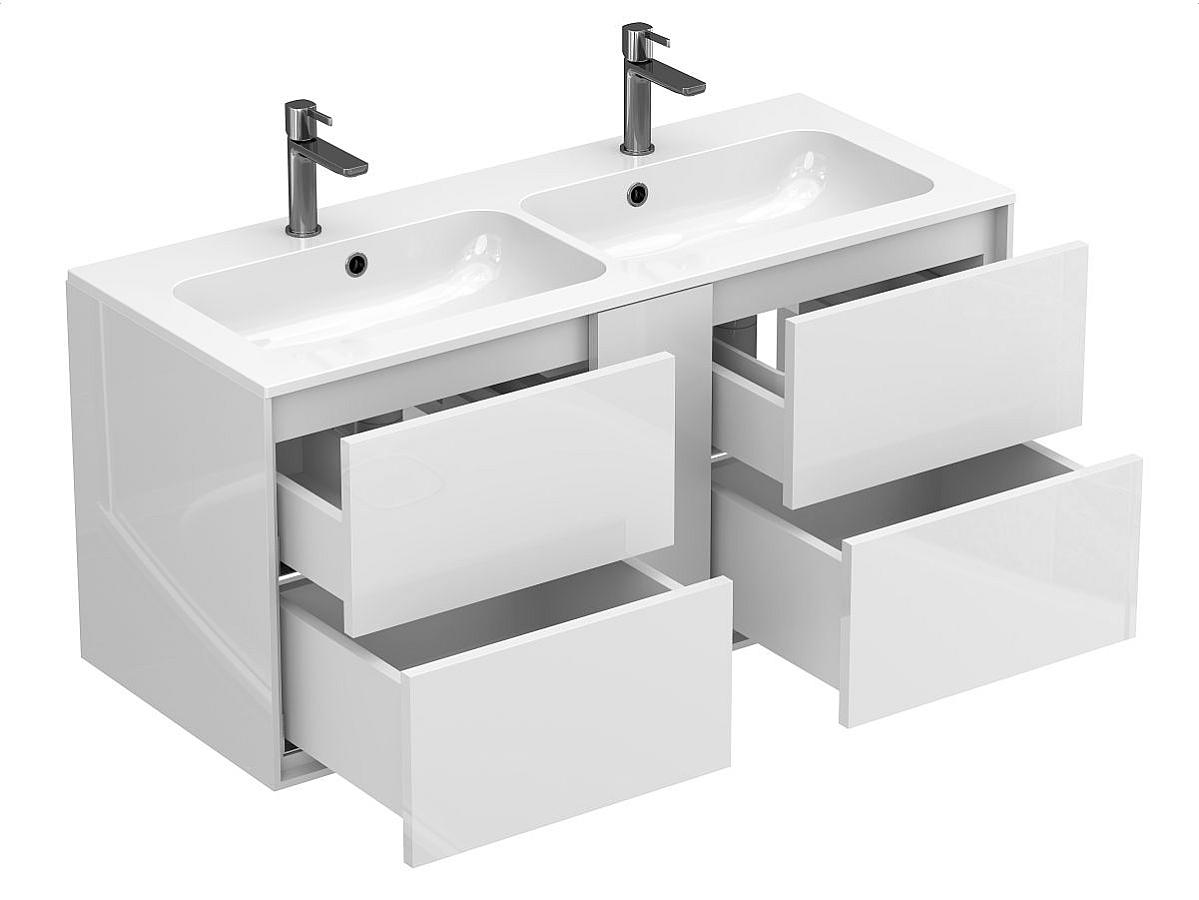 Тумба оптимизирована под умывальники с 2-мя чашами и умывальники с крылом серий Della, Jessel, Agness, Lake. Благодаря продуманной геометрии умывальник и тумба образуют целостную композицию.