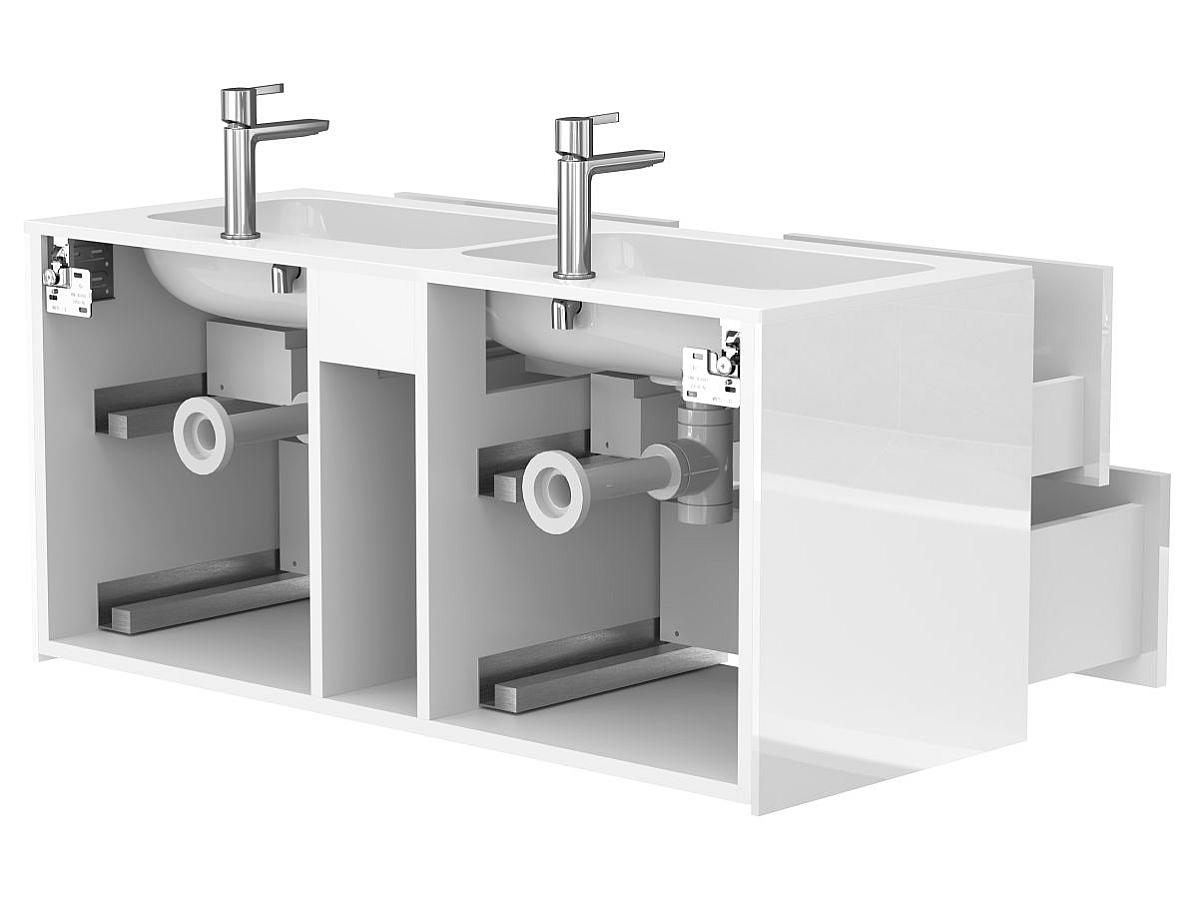 • Ширина тумб от 1100 до 1500 мм — подходит для умывальников с двумя чашами или широким крылом.