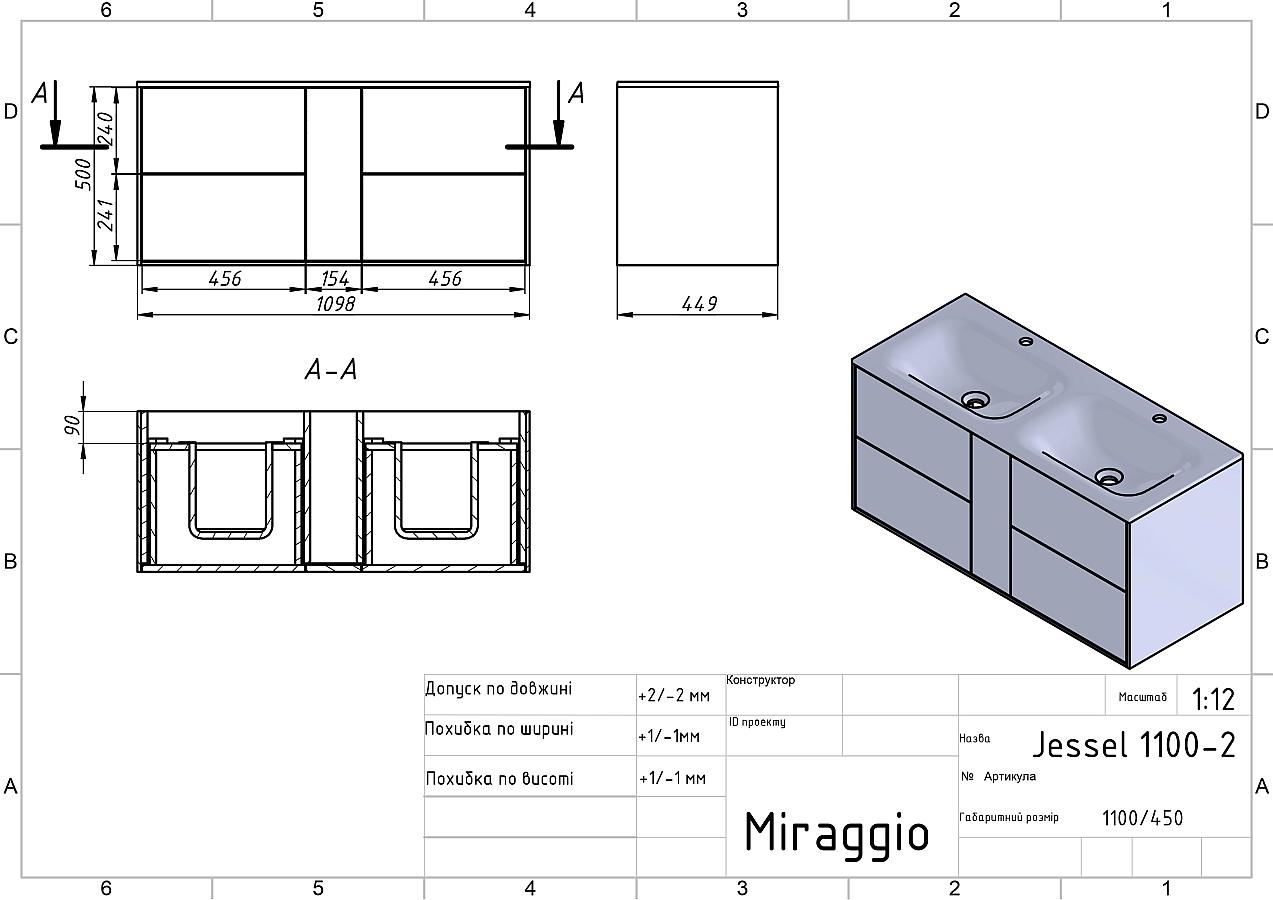 Документація Тумба подвесная SPACE Белая матовая с умывальником JESSEL 1100 D