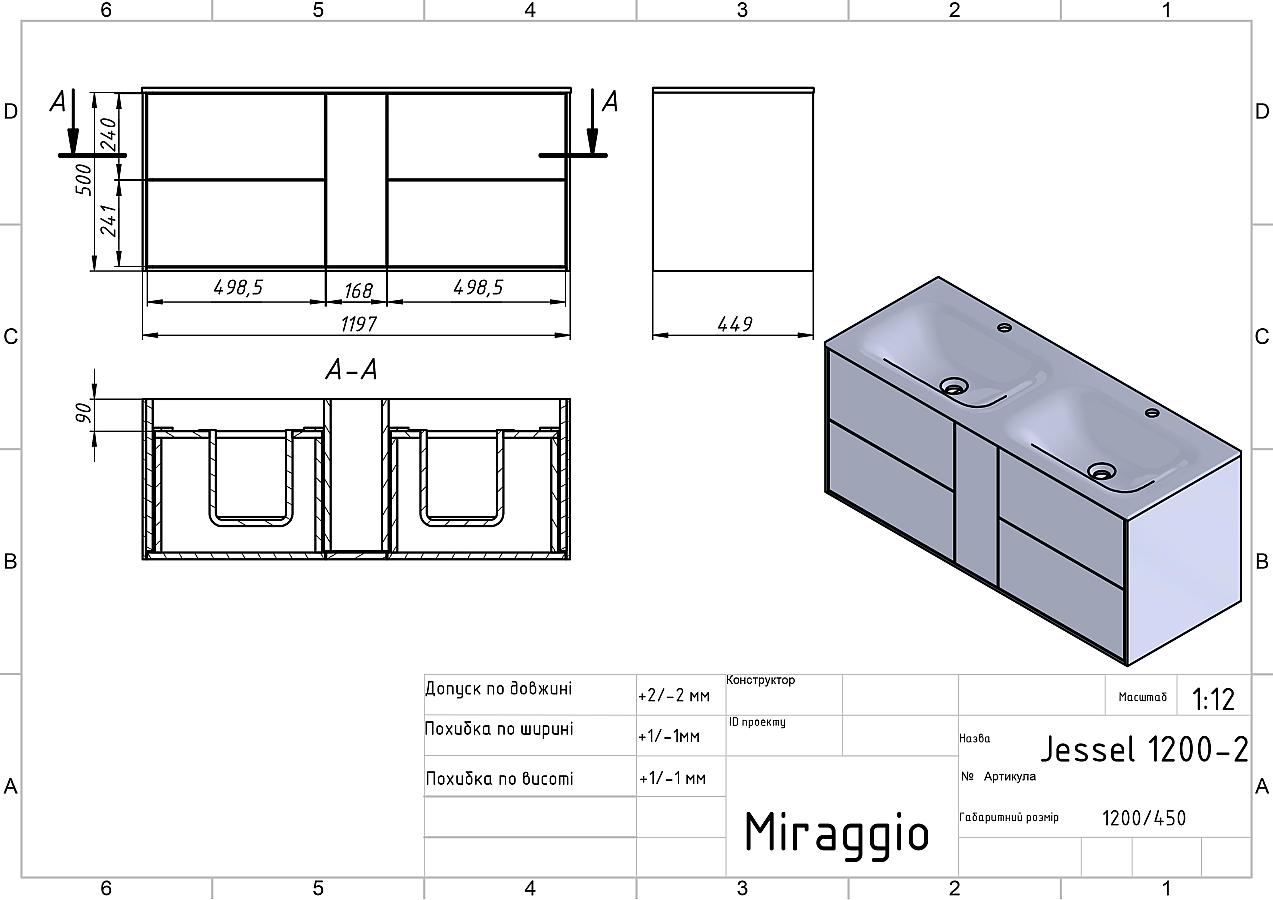 Документація Тумба подвесная SPACE Белая soft-touch с умывальником JESSEL 1200 D