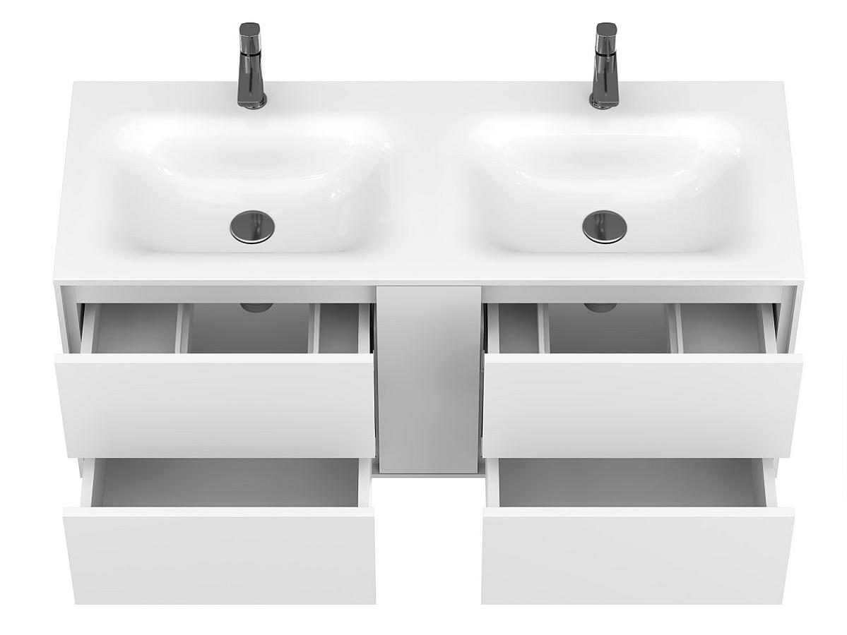 Тумба подвесная SPACE Белая soft-touch с умывальником JESSEL 1200 D