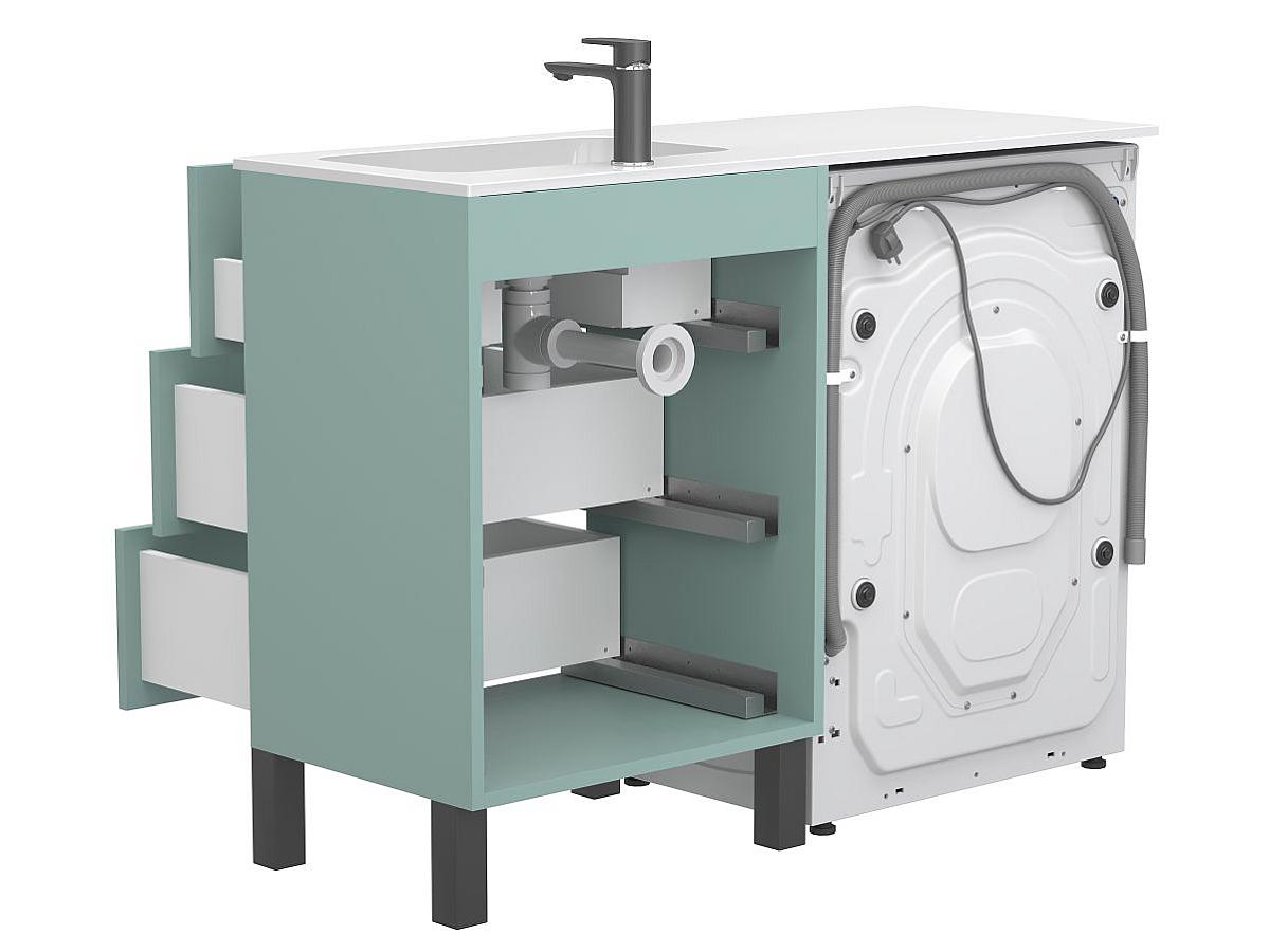 *Тумба поставляется в комплекте с раковиной. Стиральная машина не входит в комплект и визуализируется для примера интеграции. **Цена зависит от выбранной конфигурации (количество ящиков, материал, раковина, отделка и т.д.).