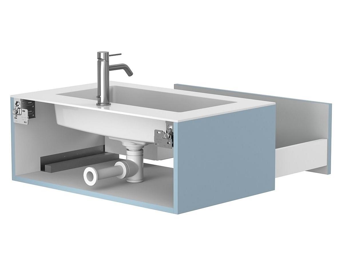 Для производства корпуса и фасадов используется влагостойкий МДФ или ДСП с лазерной кромкой, с качественным лакокрасочным покрытием или акриловым ламинированием. Это гарантирует долговечность и сохранение внешнего вида даже в условиях повышенной влажности.
